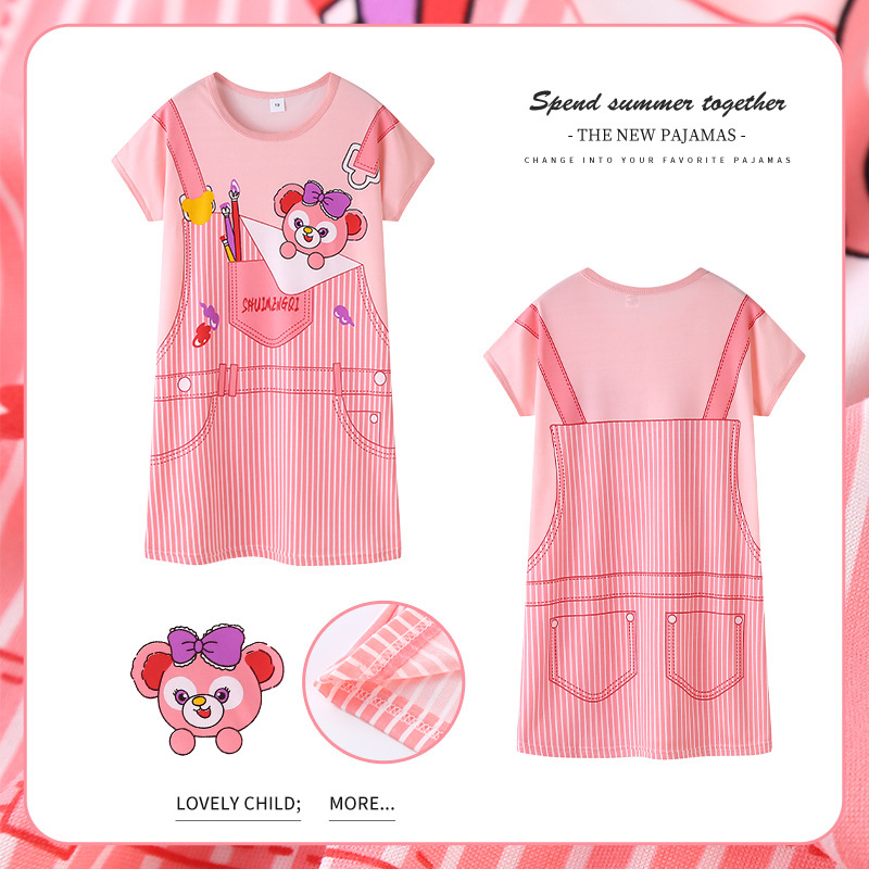 | nameOriginal | Cross-border foreign trade summer children's pajamas women's thin milk silk sweet cute cartoon pullover short sleeve nightdress western style |