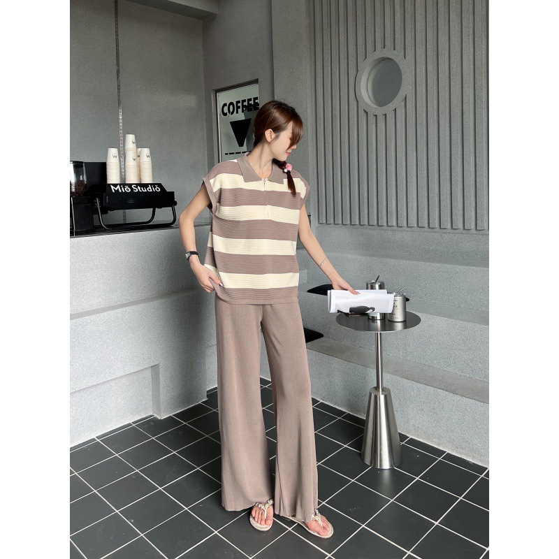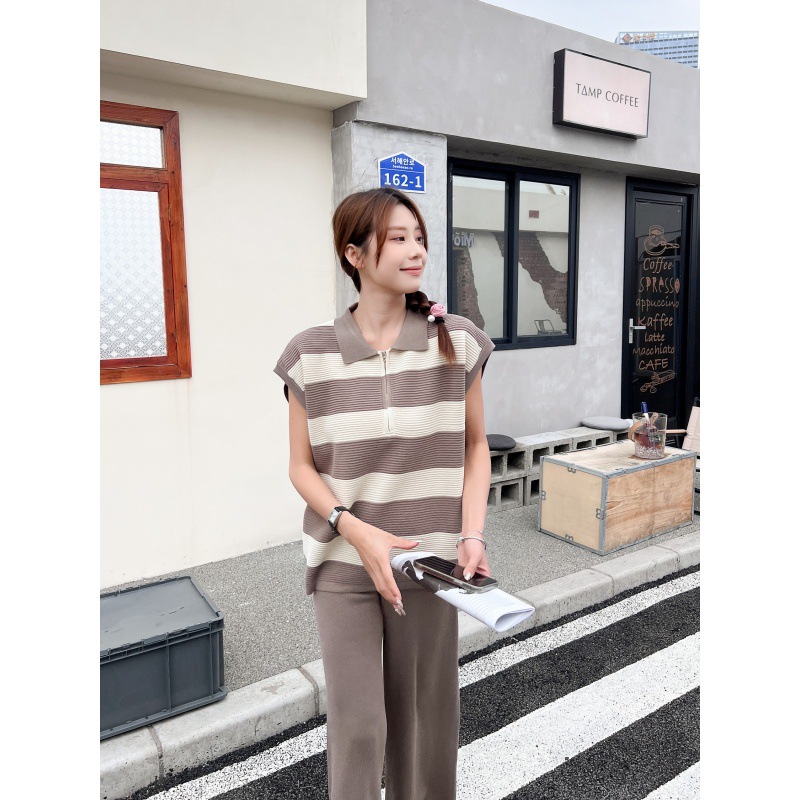 | nameOriginal | Cross-border Foreign Trade Summer Collar Half-zipper Striped Knitted Waistcoat Short-sleeved Korean Commuter All-match Knitted Two-piece Set |