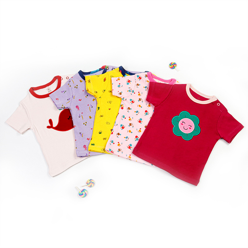 | nameOriginal | Cross-border foreign trade wholesale 2023 new spring and summer clothing Europe and the United States open shoulder rib cloth infant short sleeve T-shirt 5 pieces |