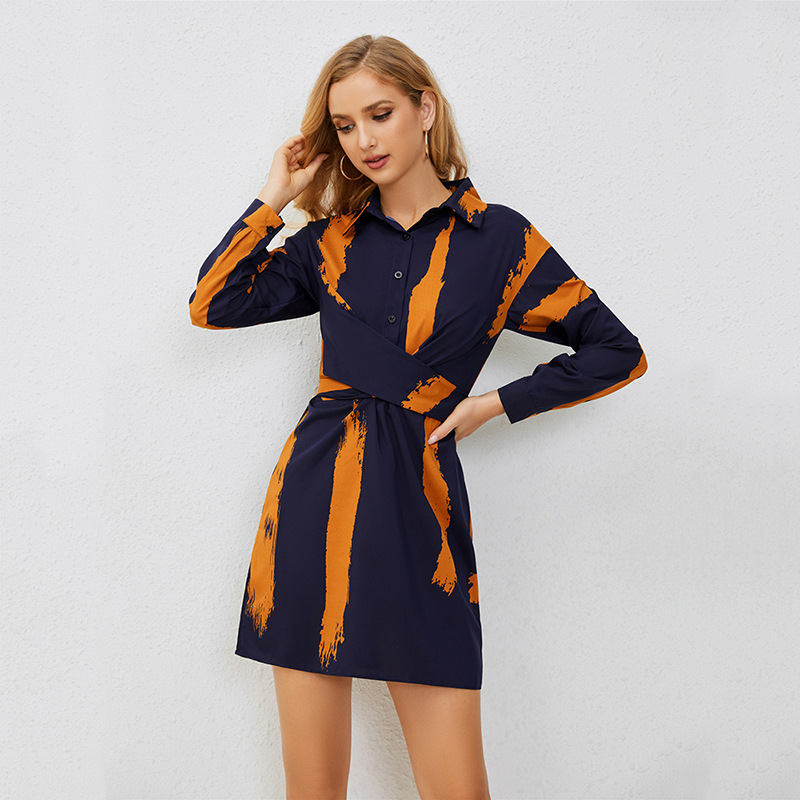 | nameOriginal | Cross-border foreign trade women's clothing AliExpress Amazon 2023 European and American irregular lapel striped short skirt shirt dress |