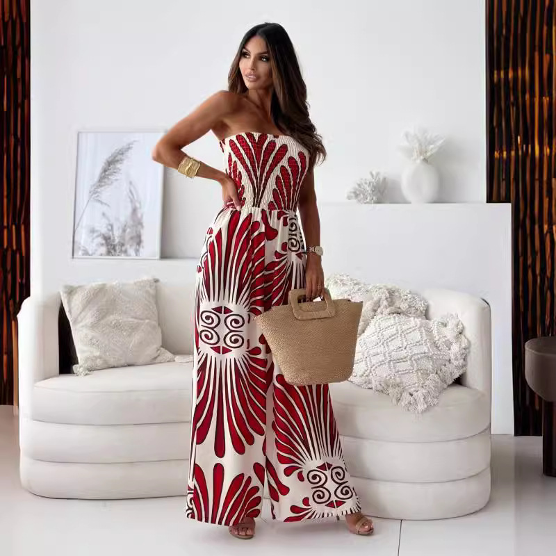 Cross-border foreign trade women’s clothing AliExpress Amazon 2024 European and American fashion one-word collar backless waist wide leg jumpsuit