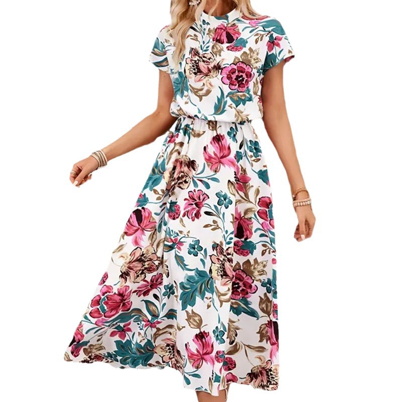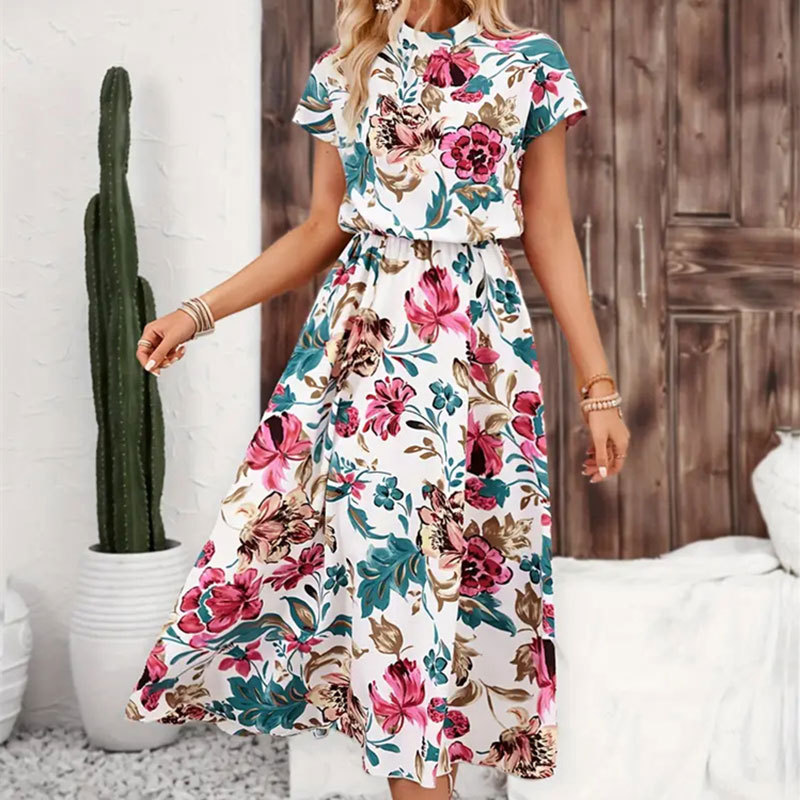 | nameOriginal | Cross-border Foreign Trade Women's Flower Printing Loose Vertical Collar Short-sleeved Dress Spring and Summer Women's Design Sense Mid-length Dress |
