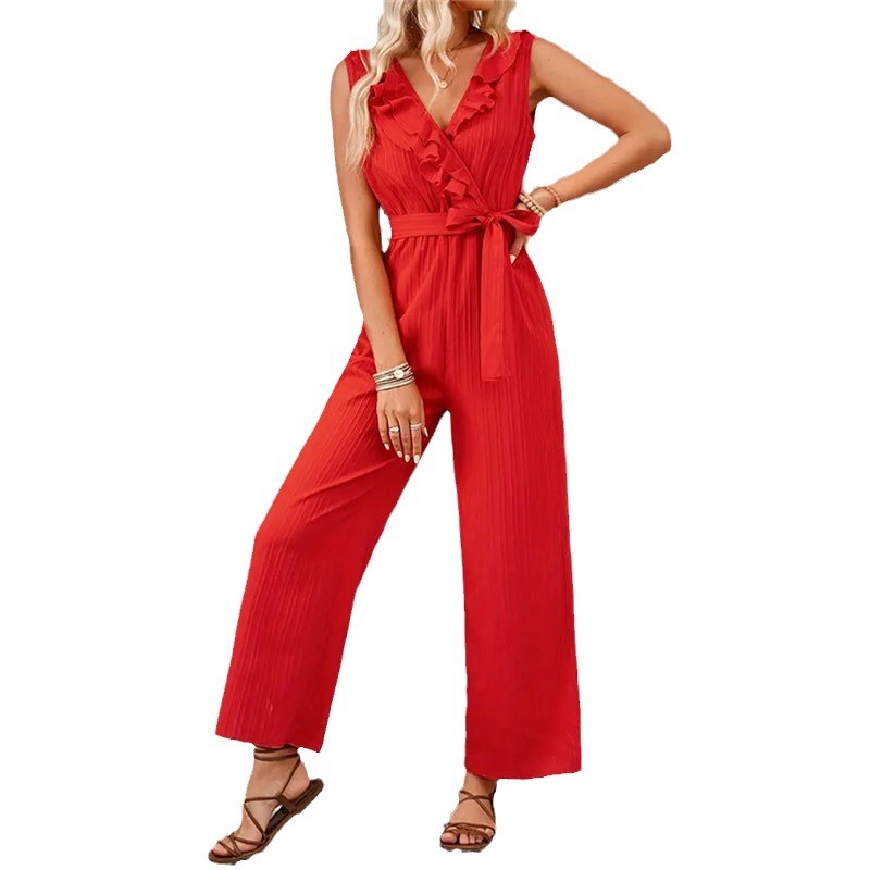 | nameOriginal | Cross-border Foreign Trade Women's Jacquard Striped Ruffle Wide Leg Pants Women's Belt Straight Sleeveless Casual Pants Women's Jumpsuit |