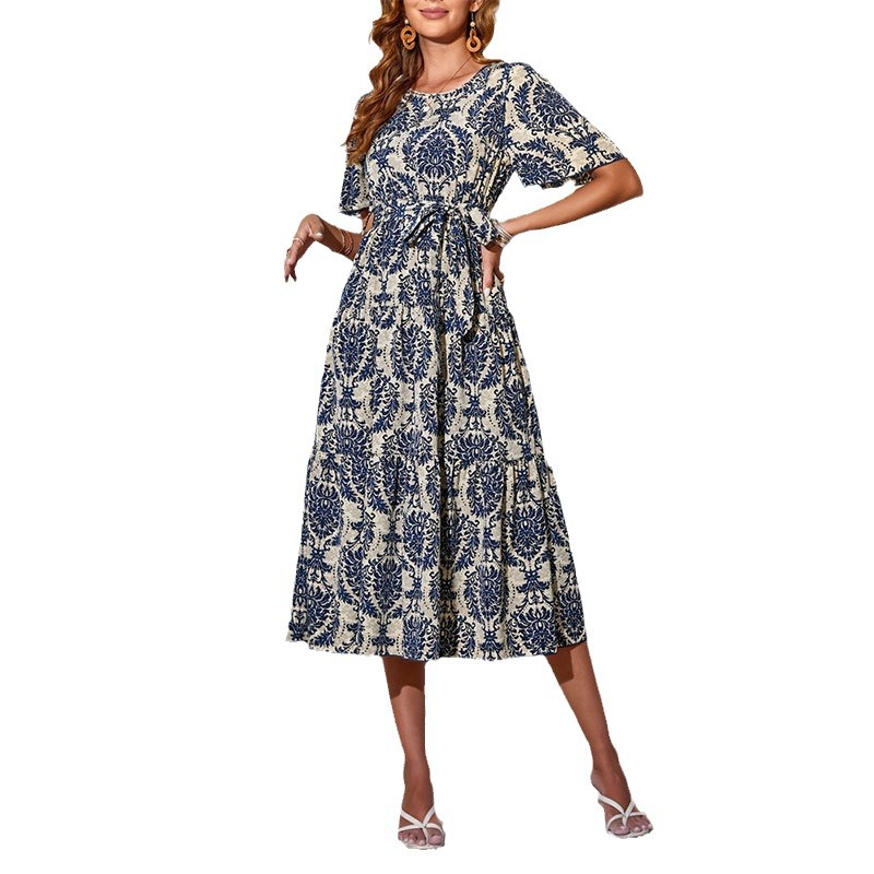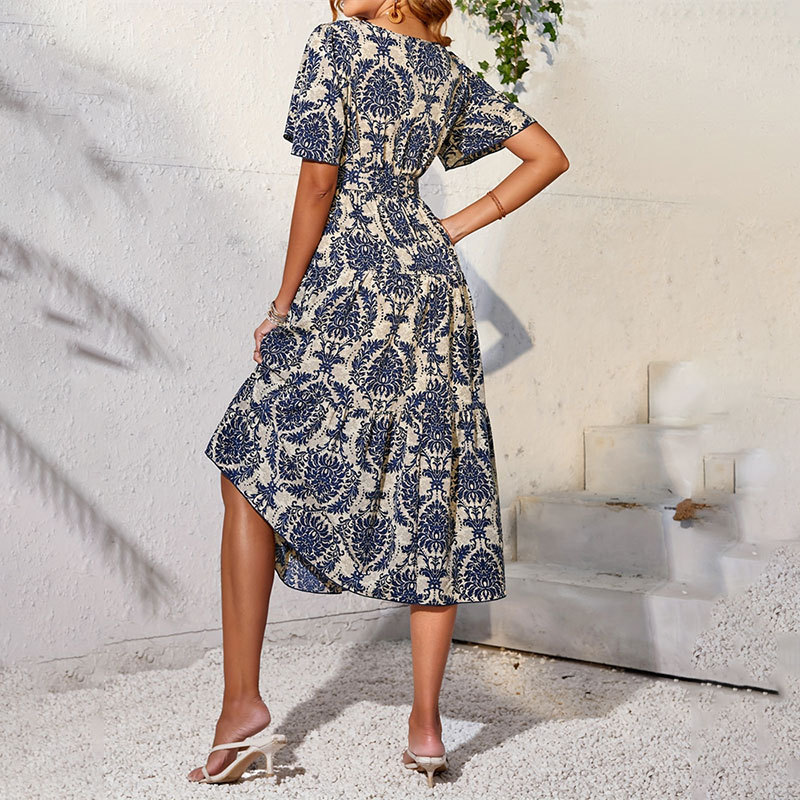 | nameOriginal | Cross-border Foreign Trade Women's Ruffled Short Sleeve Printed Cake Skirt Flying Sleeve dress Spring and Summer Women's Design Sense Skirt |