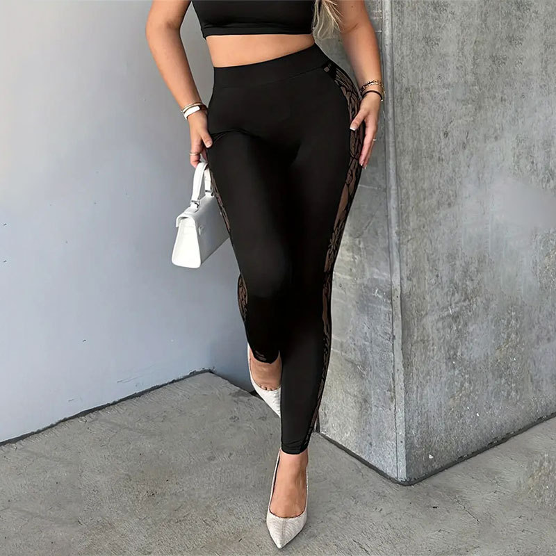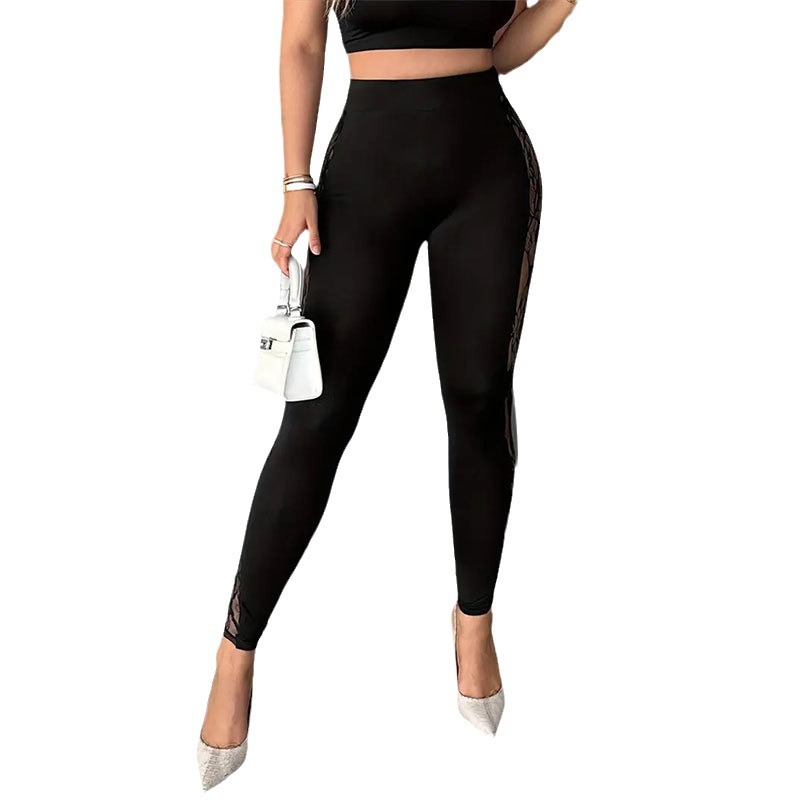 | nameOriginal | Cross-border foreign trade women's stitching lace high waist slim-fit perspective sexy long casual pants Amazon pants women's pants |