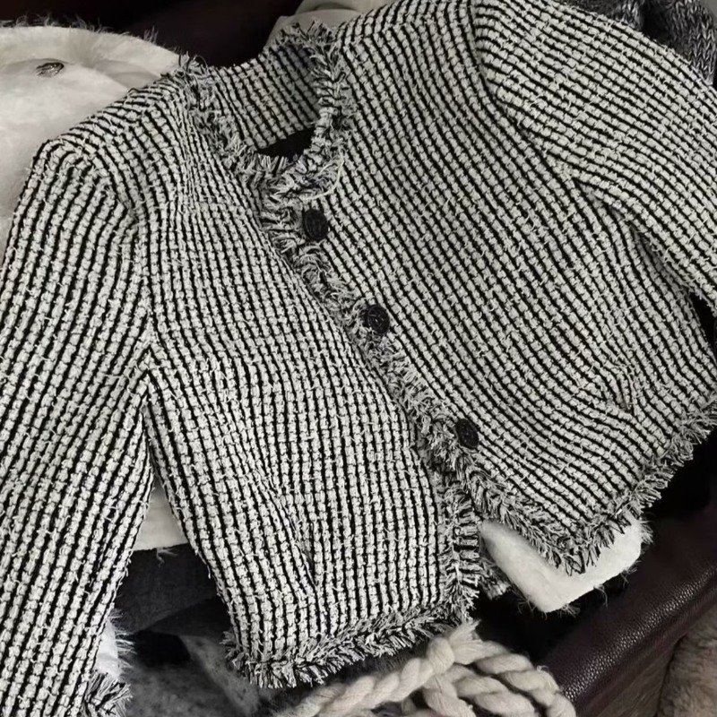 Cross-border French Retro Black Chanel Style Sweater Jacket Women’s Autumn and Winter New Style Elegant Short Cardigan Top