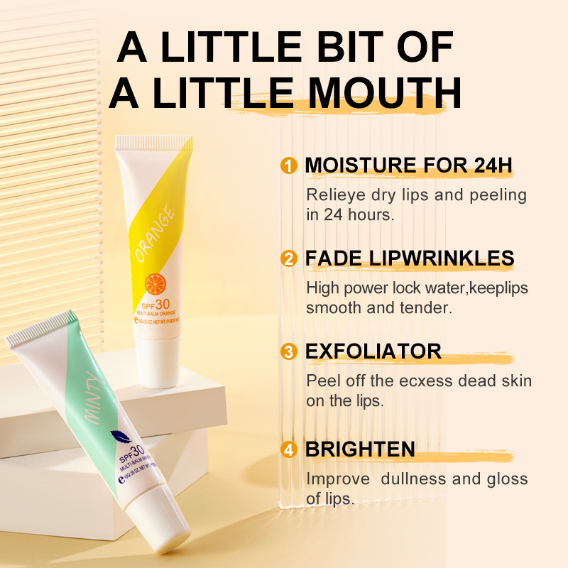 | nameOriginal | Cross-border Fruit Lip Balm moisturizing SPF30 repair anti-cracking fade lip lines lip care |