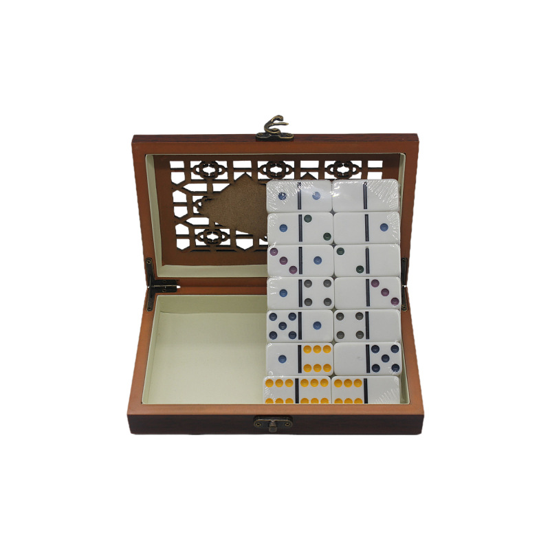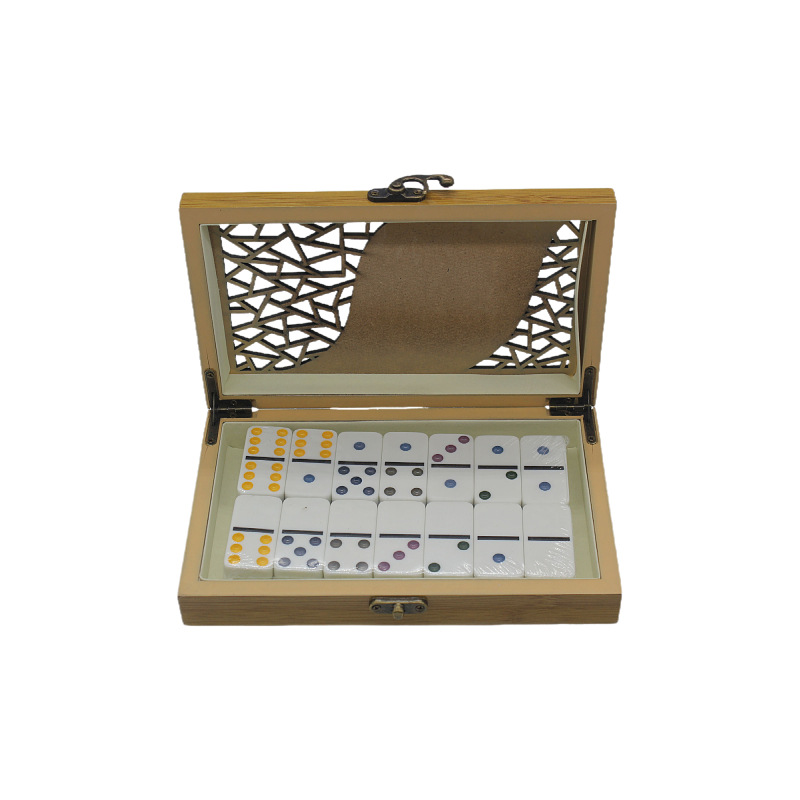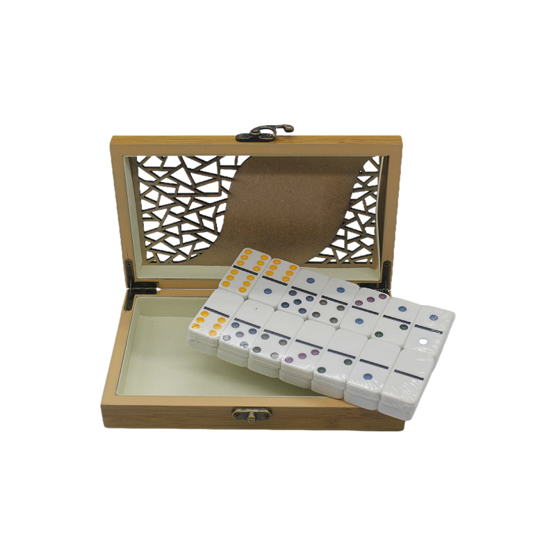 | nameOriginal | Cross-border fun domino hollow wood boxed white colored dominoes children's educational toys dominoes wholesale |