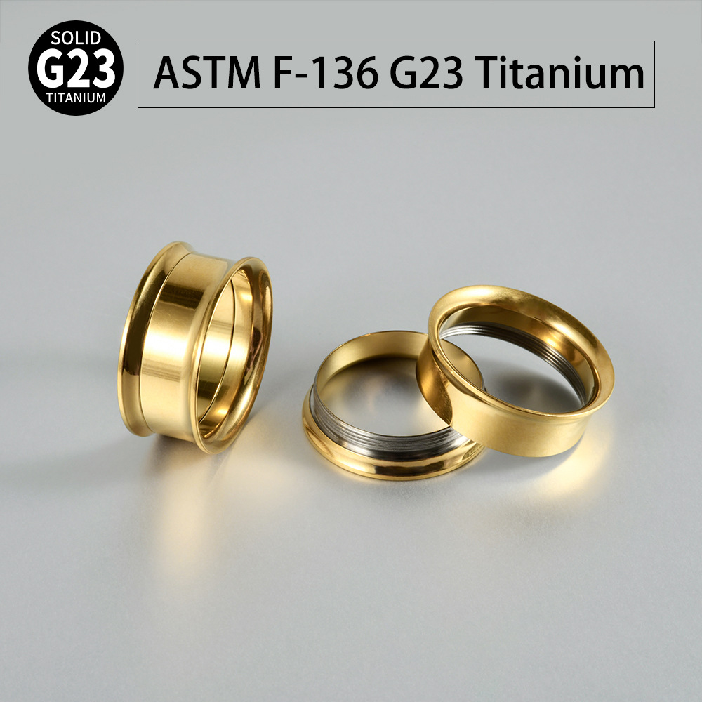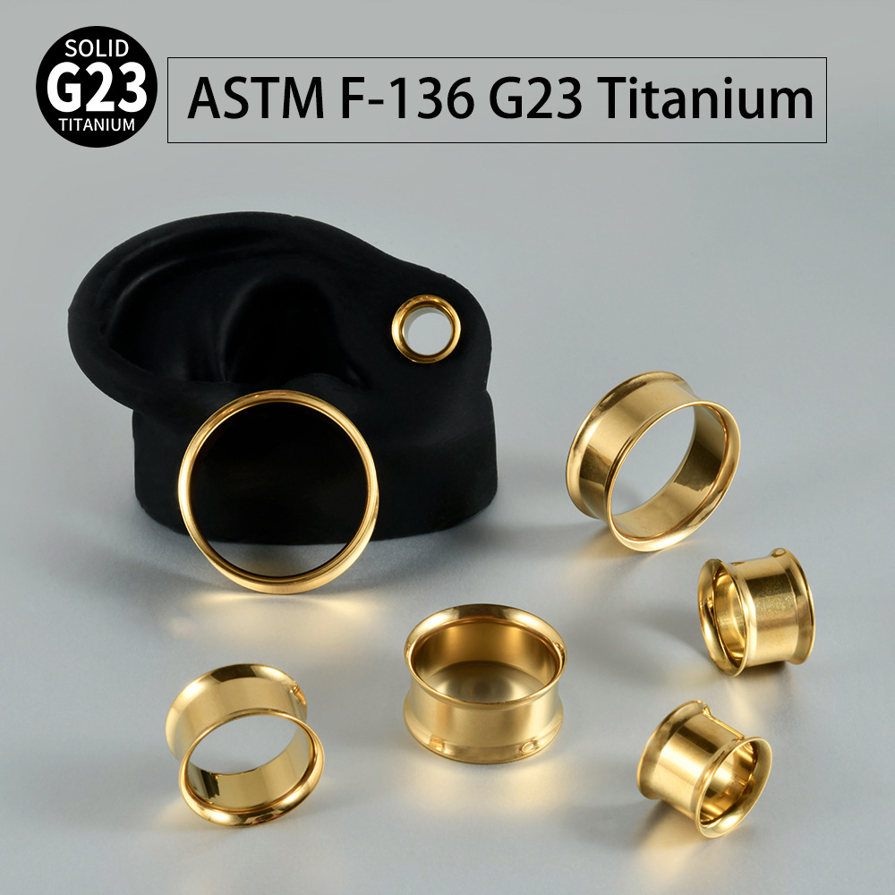 | nameOriginal | Cross-border G23 titanium gold toothless double horn earrings simple electroplating external thread hollow pulley ear expansion titanium earrings |