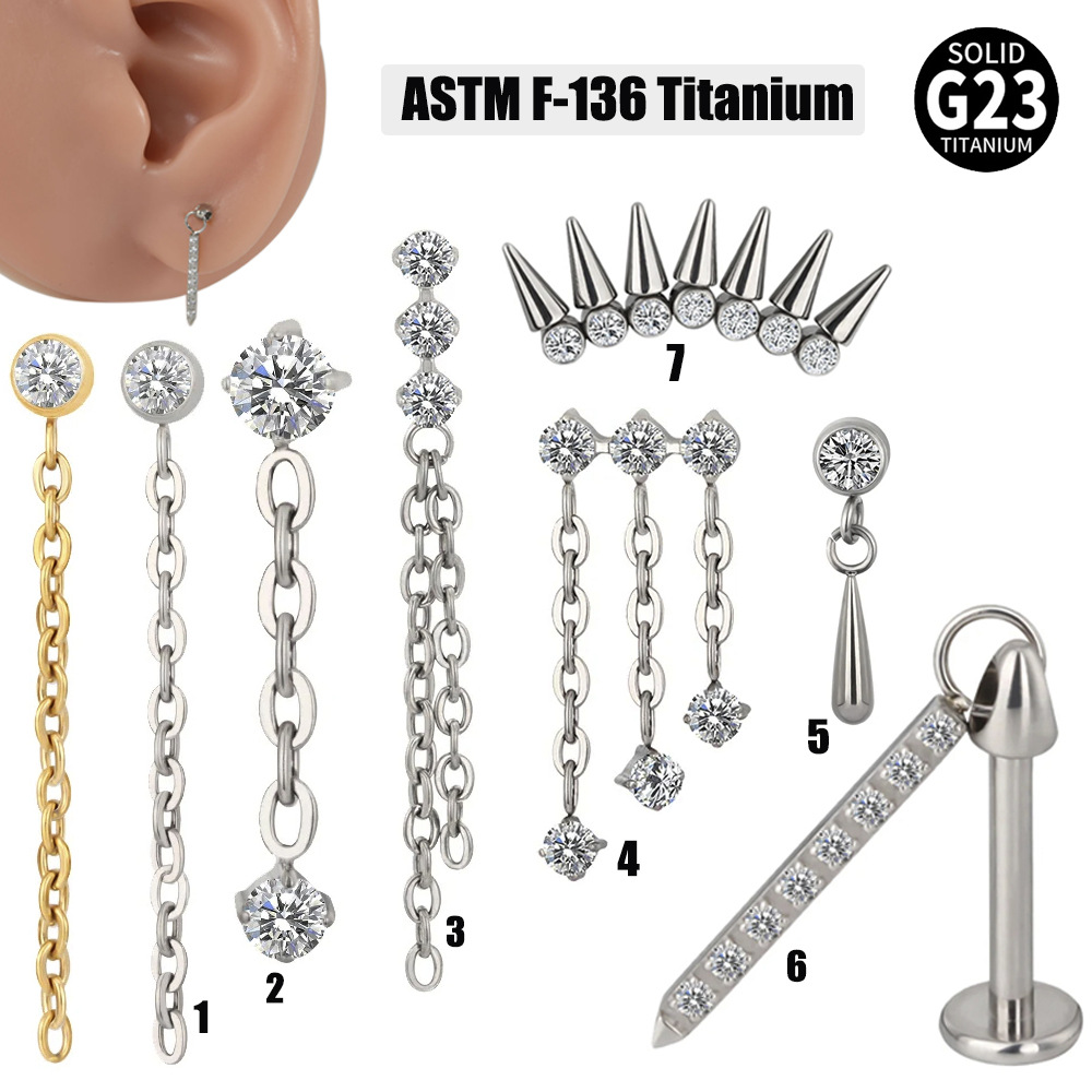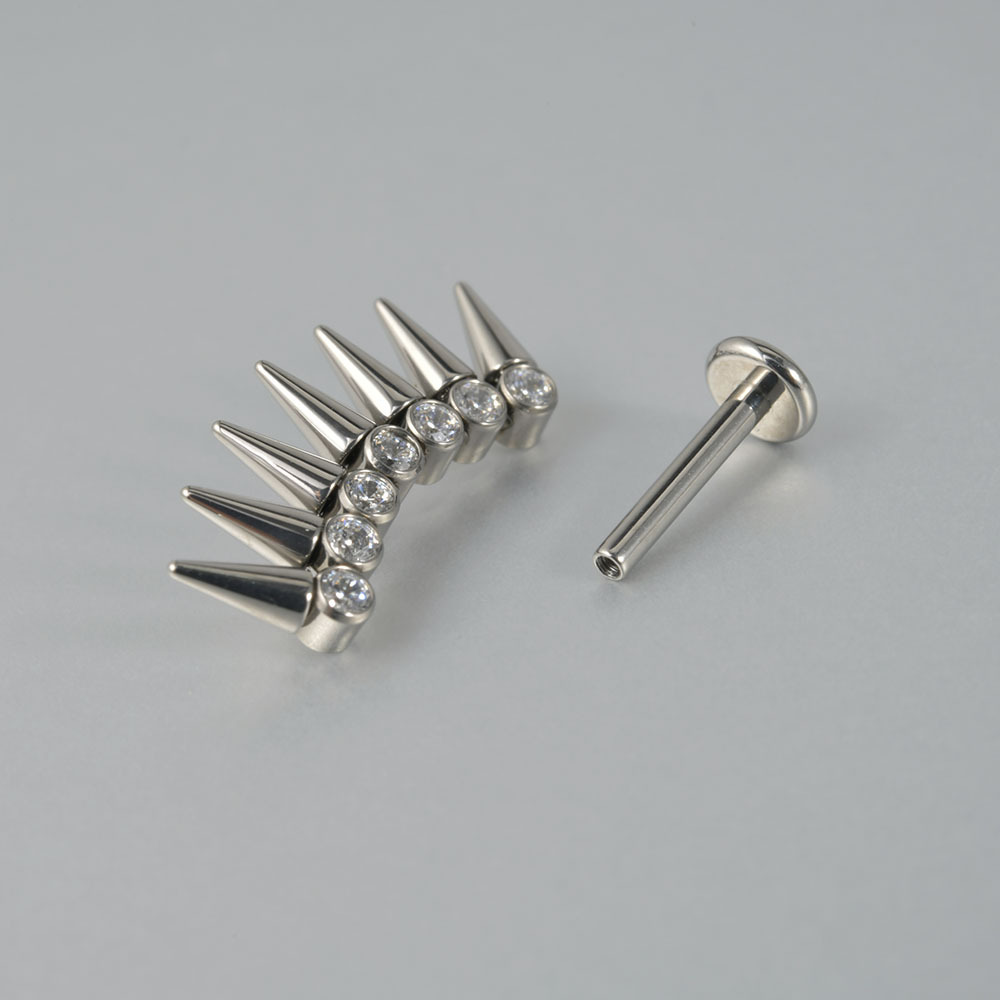 Cross-border G23 titanium internal thread lip nail pointed cone flat chain pendant zircon earring titanium alloy internal tooth lip ring
