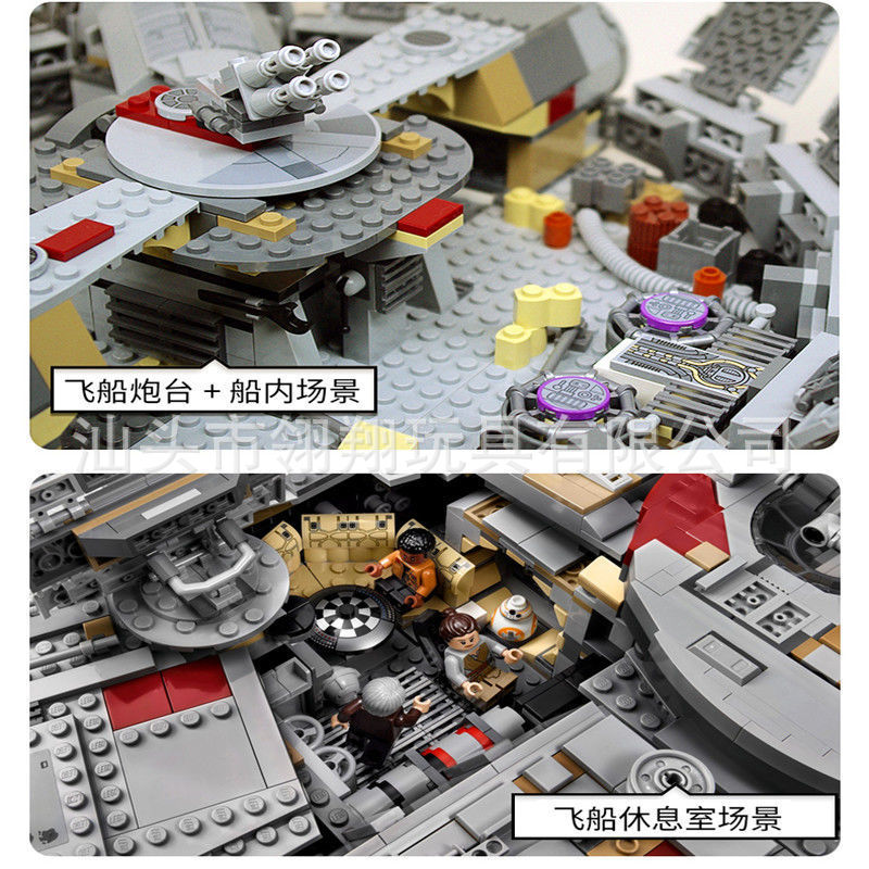 | nameOriginal | Cross-border generation building blocks Star Wars same style Millennium Falcon cheap spaceship boys difficult assembling toys |