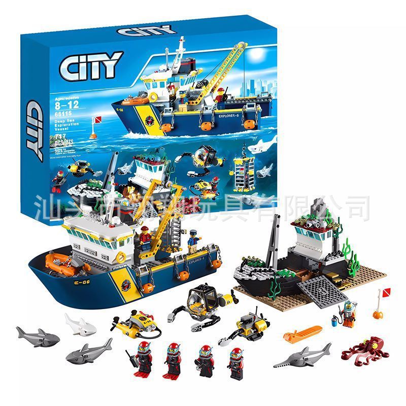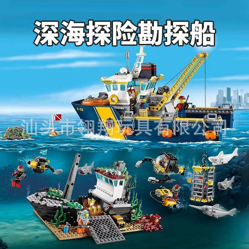 Cross-border generation of deep sea exploration and exploration city series marine giant ship assembling building blocks children's toys 60095