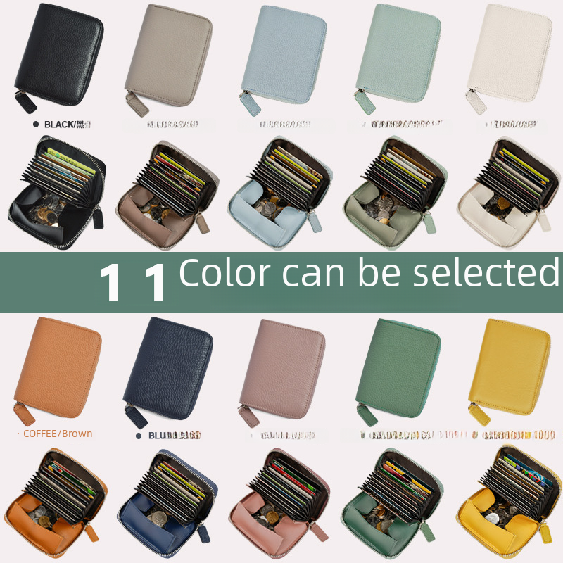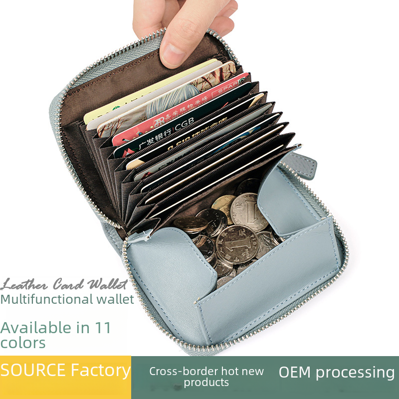 | nameOriginal | Cross-border Genuine Leather Wallet Women's Instagram Organ Card Bag RFID Zipper Coin Purse Card Bag Large Capacity Card Stake Purse |
