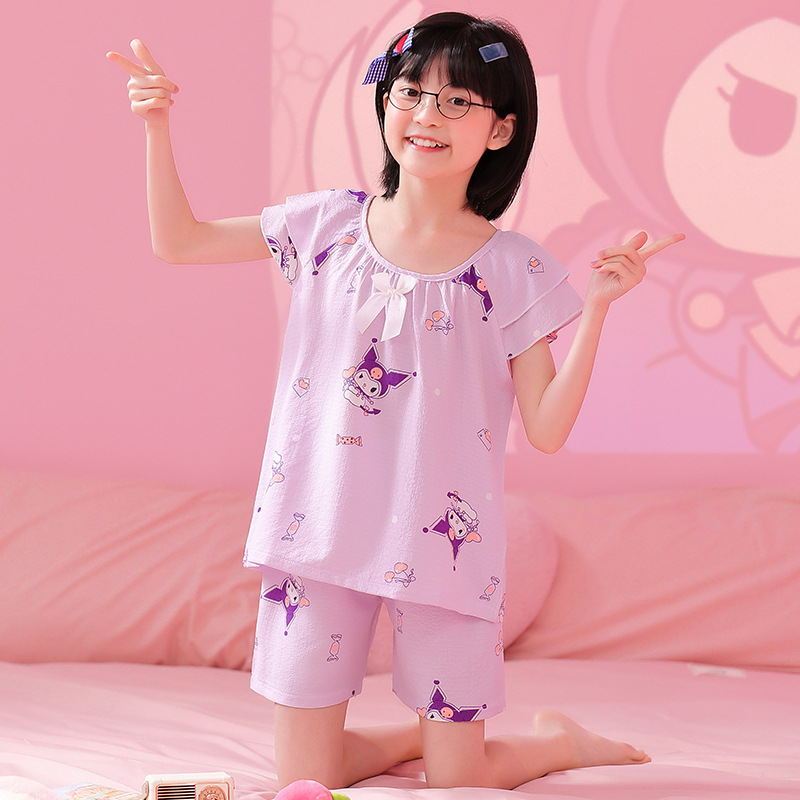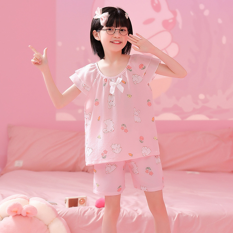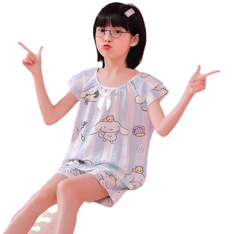 | nameOriginal | Cross-border Girls' Pajamas New Summer Thin Bubble Cotton Wrinkled Cloth Cute Cartoon Princess Style Big Children's Home Clothes |