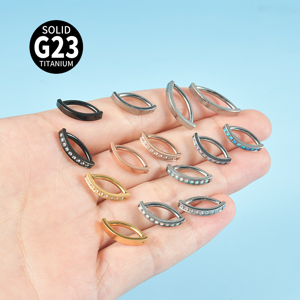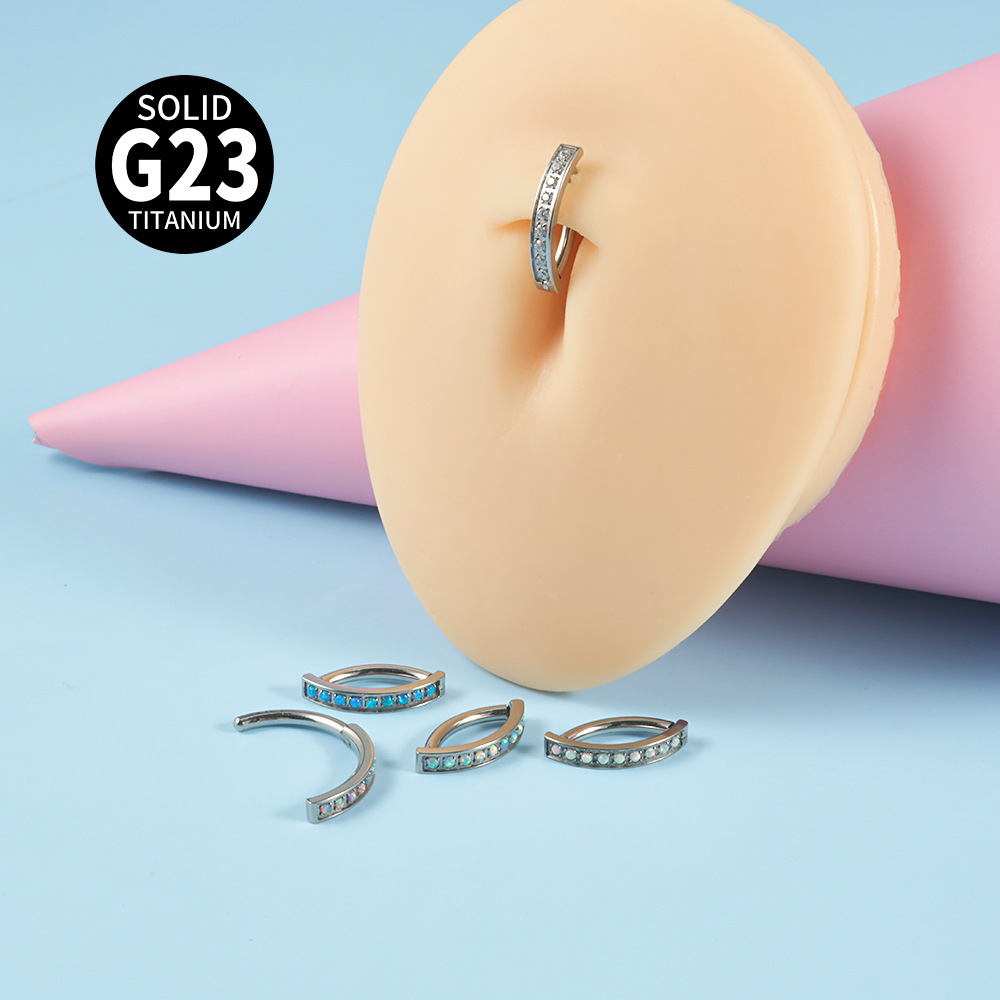 Cross-border grab Opal arc G23 titanium navel ordering glossy zircon navel clip electroplating multi-color curved bar 14g navel buckle