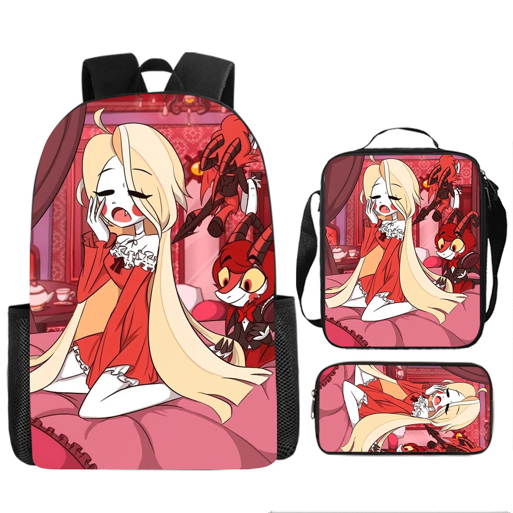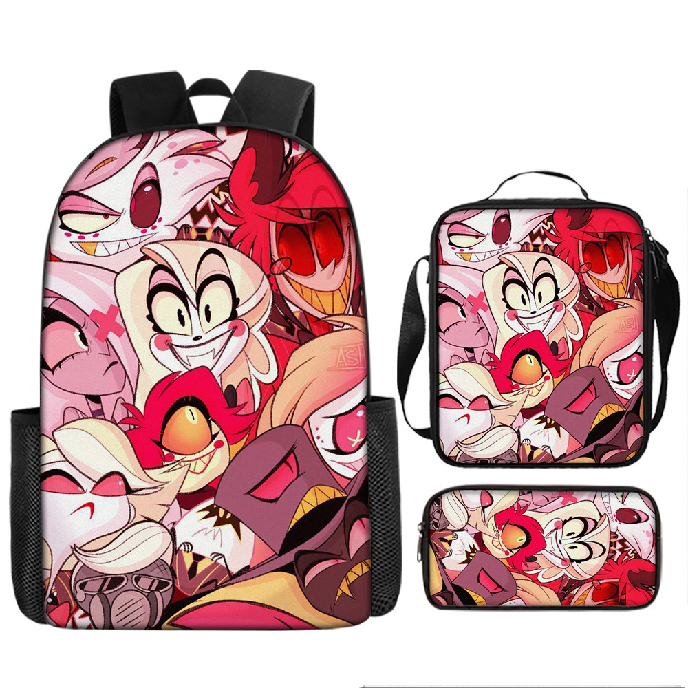 | nameOriginal | Cross-border hell Inn Hazbin Hotel student backpack cartoon schoolbag three-piece backpack satchel pencil case |