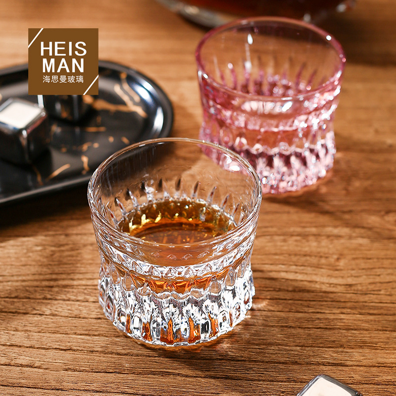 Cross-border Hesman Transparent Stripe Whiskey Glass Thickened Spirits Glass Bar Foreign Wine Glass Pink Carved White Wine