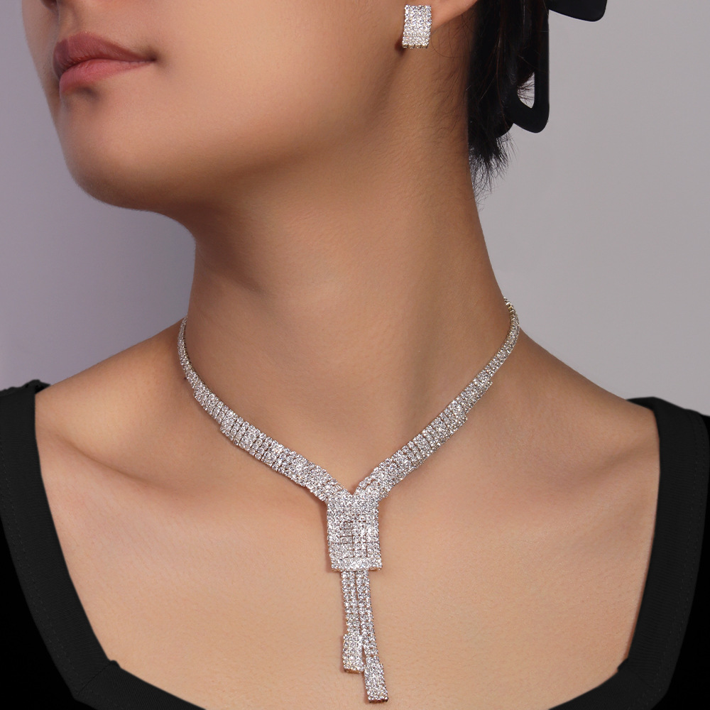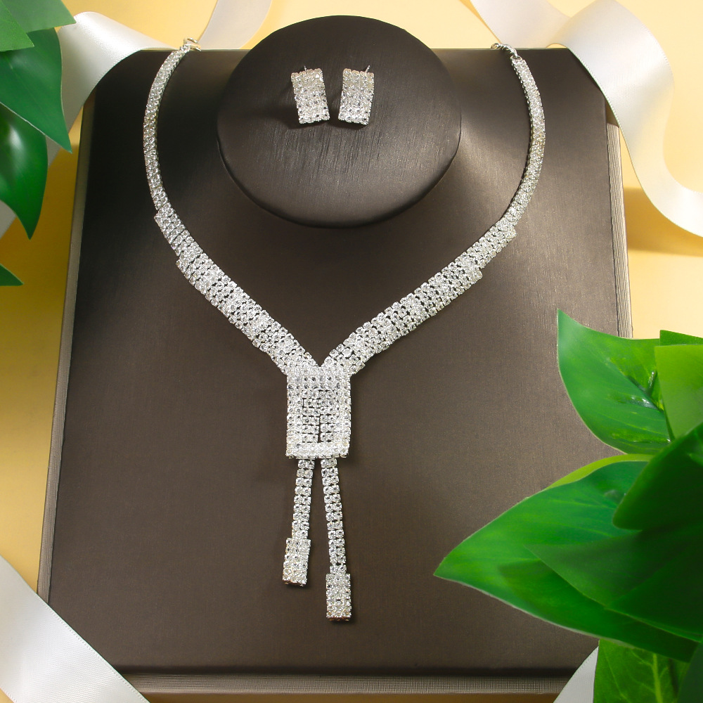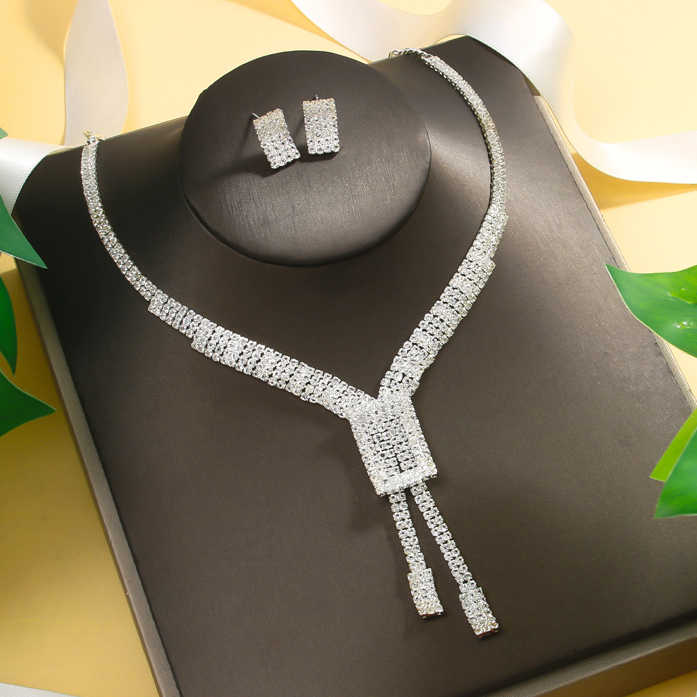 | nameOriginal | Cross-border High Sense Bride Jewelry suit Accessories Fashion Square Necklace Earrings Two-piece Jewelry Set |