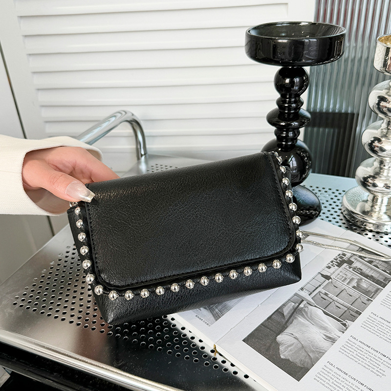 Cross-border high-value French chain bag 2024 fashion summer new rivet bag all-match texture out slung Ba