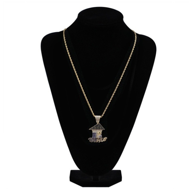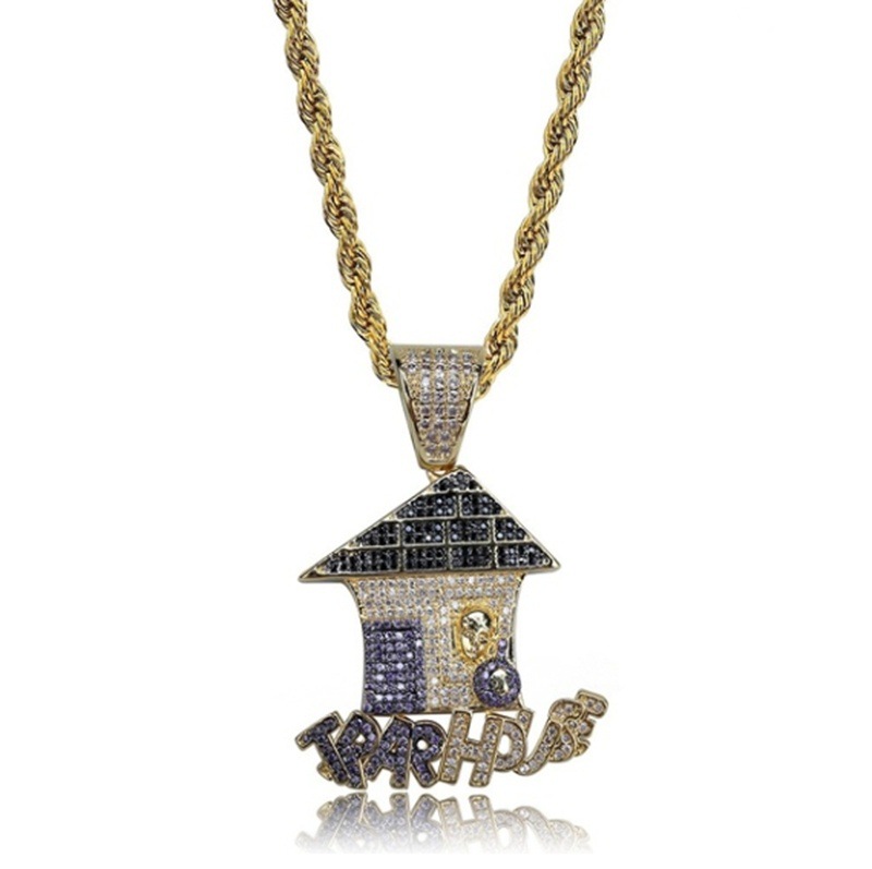 | nameOriginal | Cross-border hip hop cartoon shape TRAPHOUSE pendant necklace cubic zircon men women party jewelry |