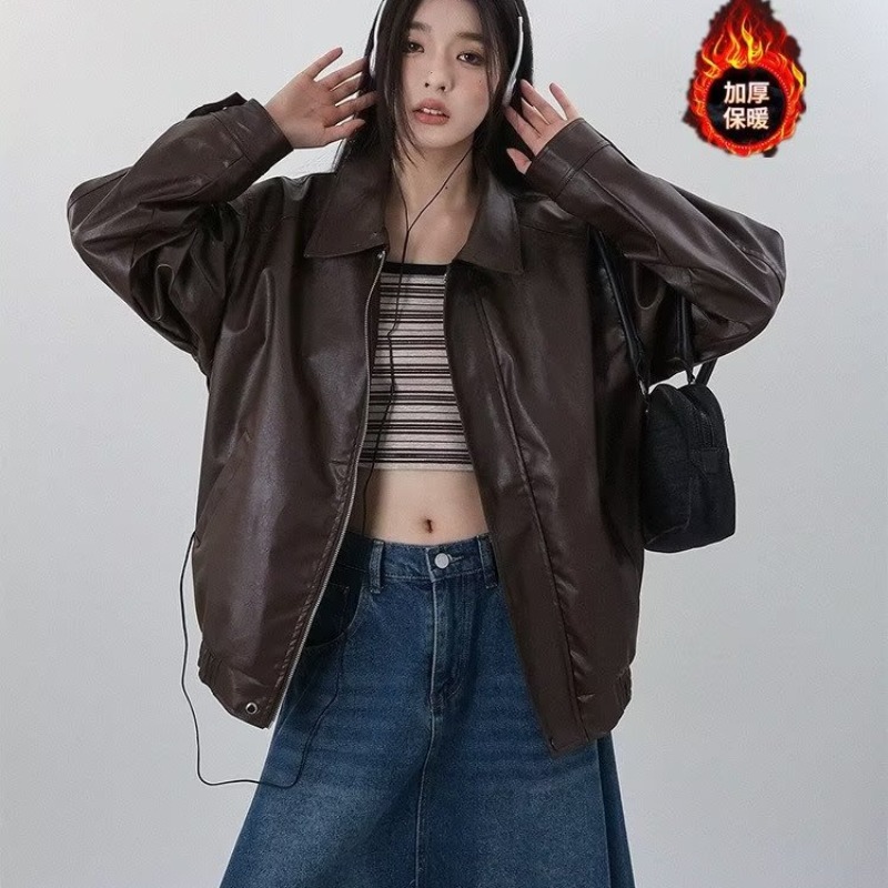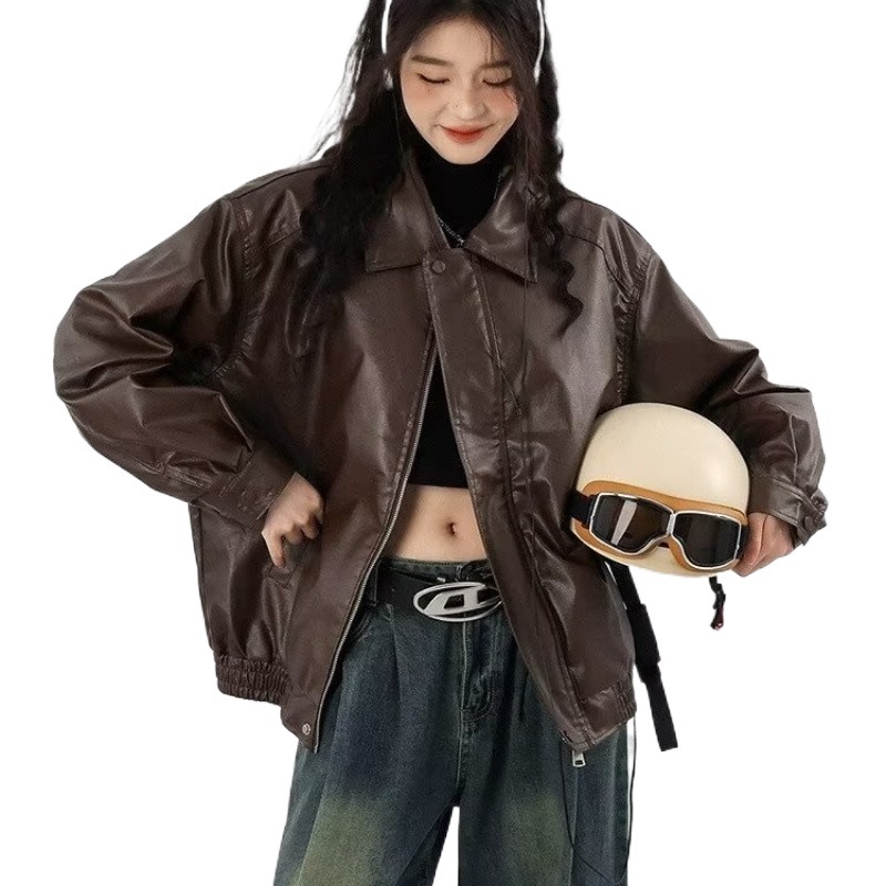 | nameOriginal | Cross-border Hong Kong-style Brown Leather Jacket Women's 2023 New Autumn American Style Retro Street Sweet Cool Motorcycle PU Wallet |
