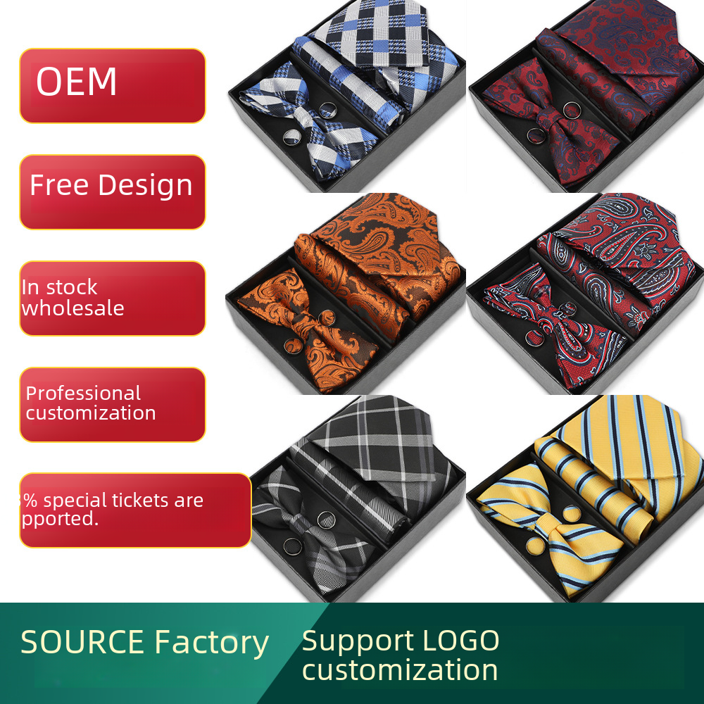 | nameOriginal | Cross-border hot 4-piece suit business formal tie 8cm men's tie bow tie set gift box manufacturers wholesale |