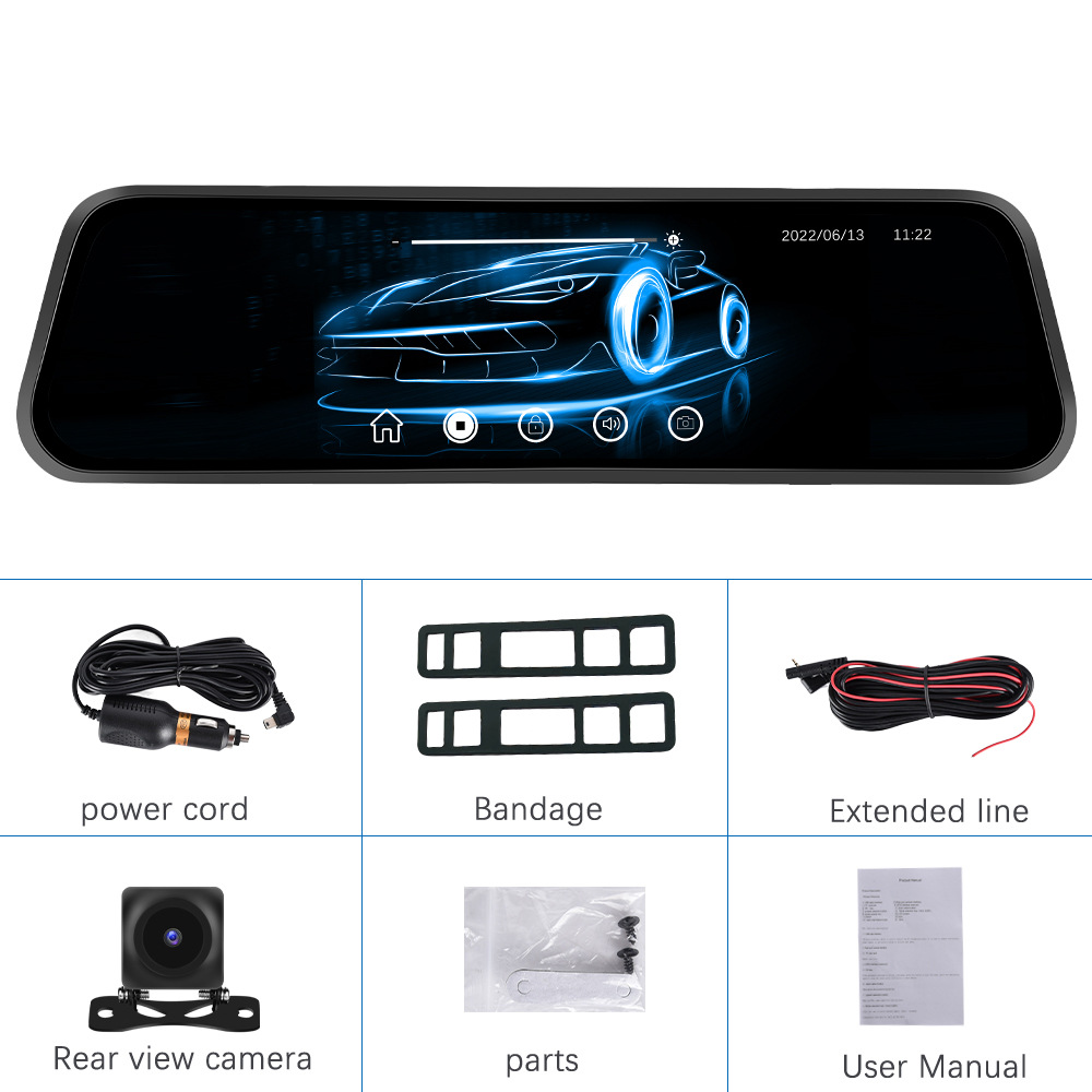 | nameOriginal | Cross-border hot 9.66-inch 1080p streaming media dual-lens Touch HD rearview mirror driving recorder |