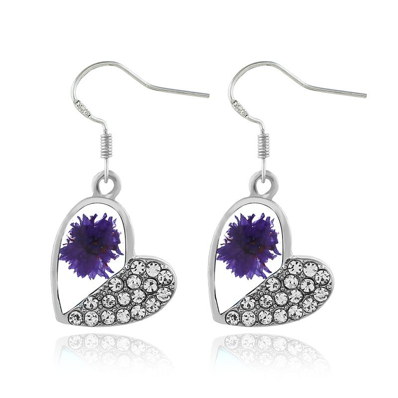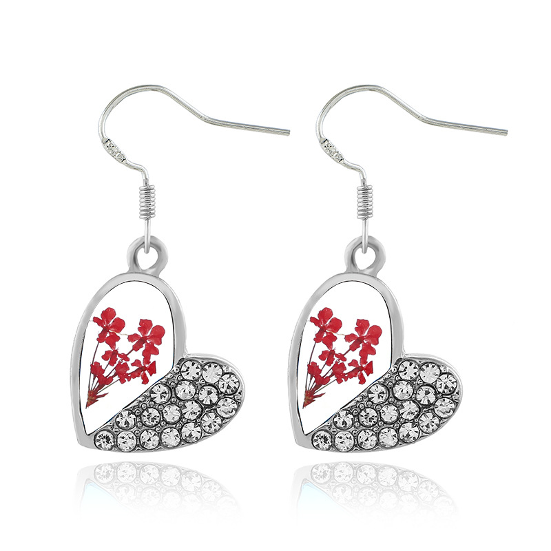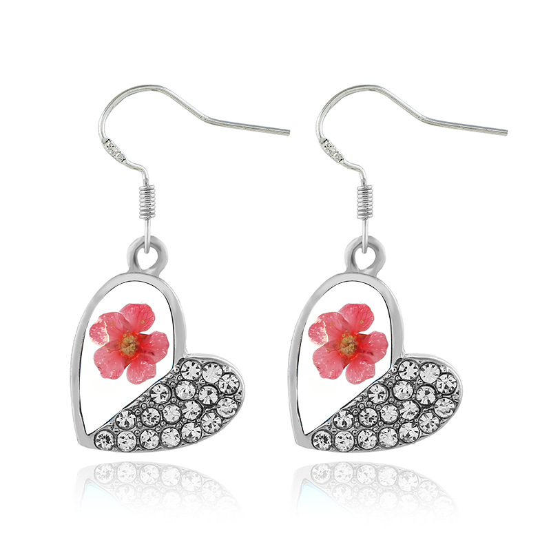 | nameOriginal | Cross-border hot dried flower earrings diamond heart-shaped resin dried flower earrings wholesale |