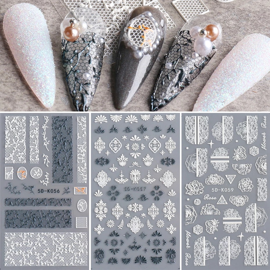 | nameOriginal | Cross-border Hot European and American Nail Art Stickers ins Japanese Hollow 5D White Butterfly Flower Vine Carved Bridal Nail Stickers |
