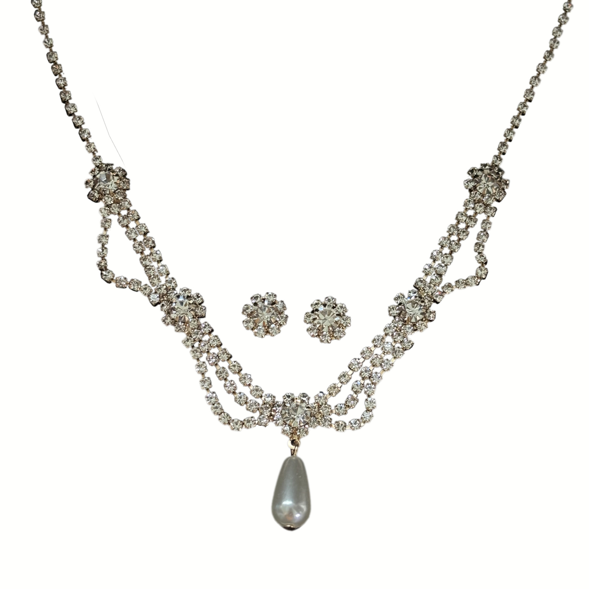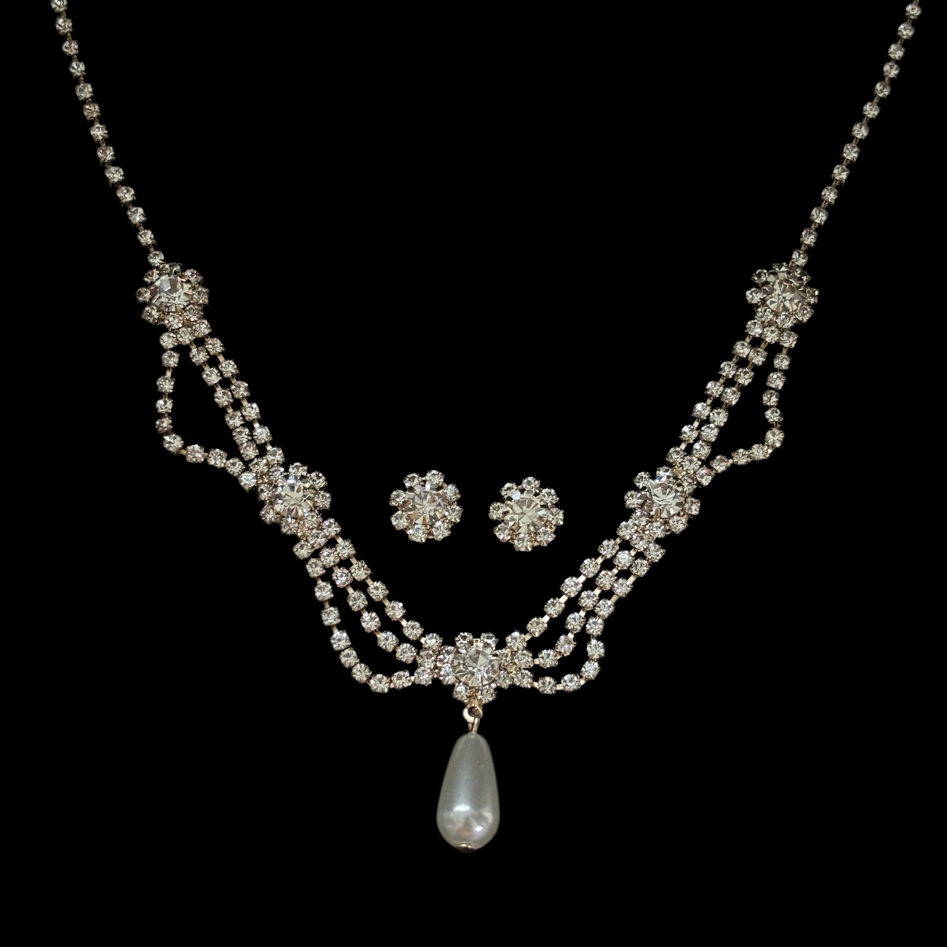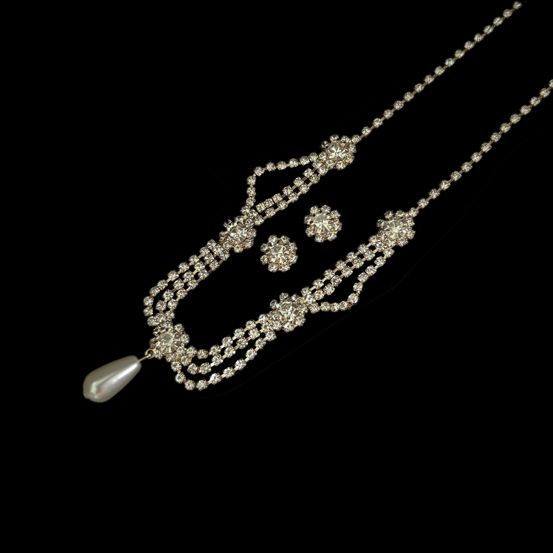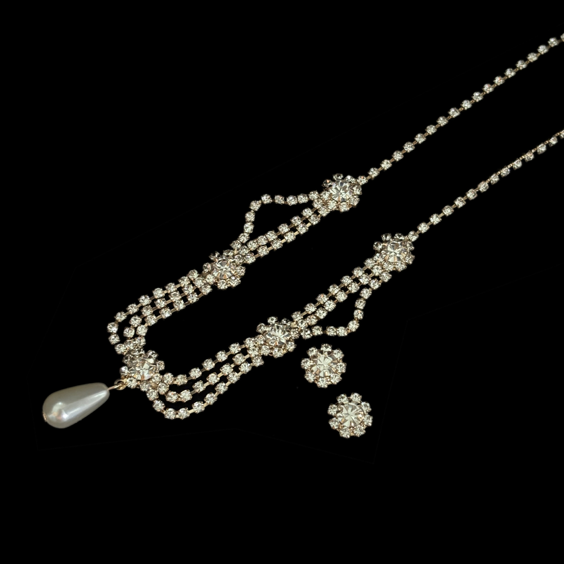 | nameOriginal | Cross-border hot full diamond multi-layer pearl flower necklace earrings set women's personality fashion clavicle chain jewelry wholesale |