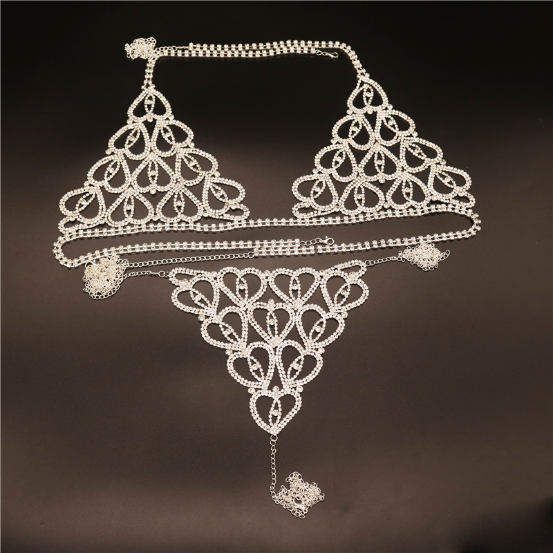 | nameOriginal | Cross-border Hot Luxury Rhinestone Bra Panties Set Sexy body chain Fashion Nightclub Love body chain |
