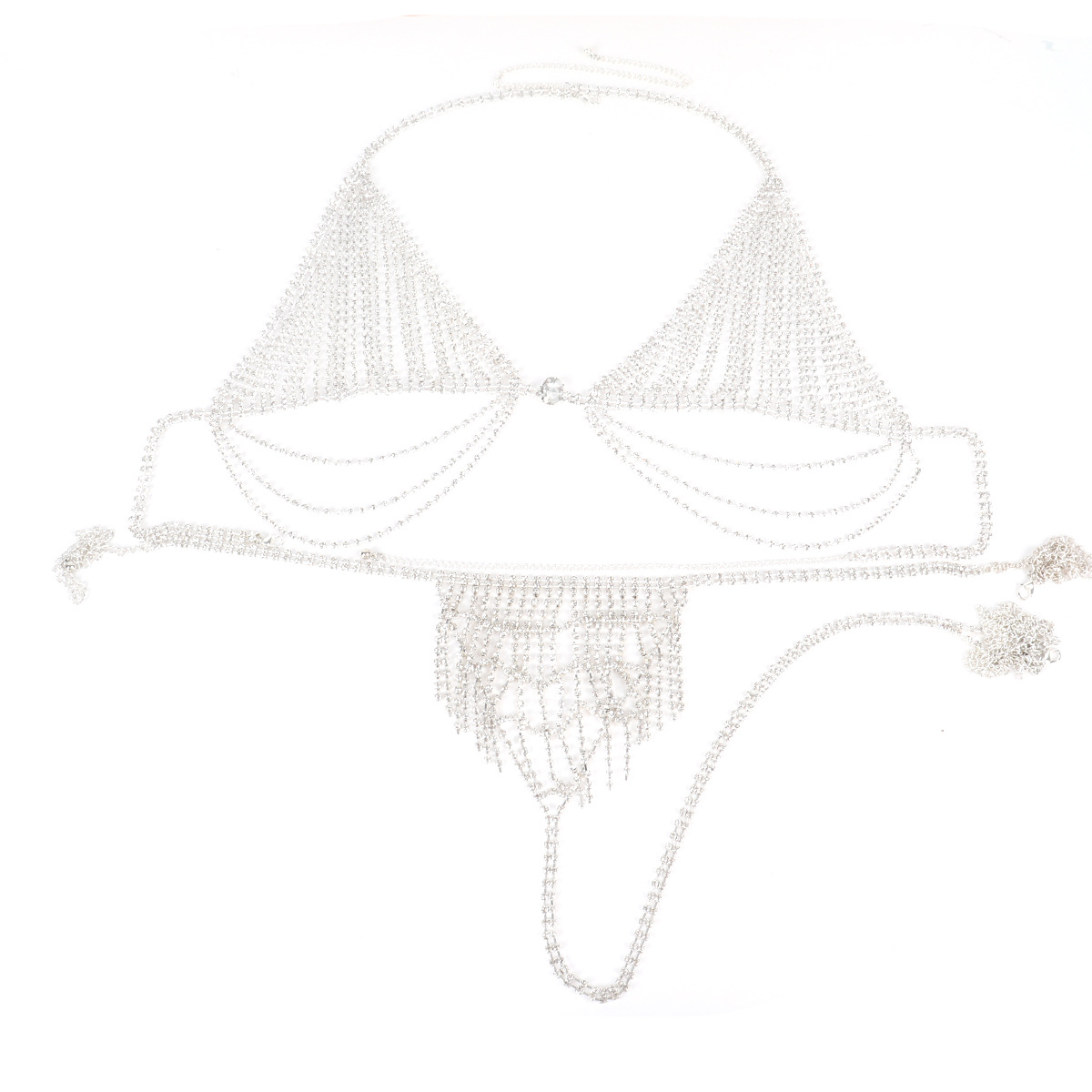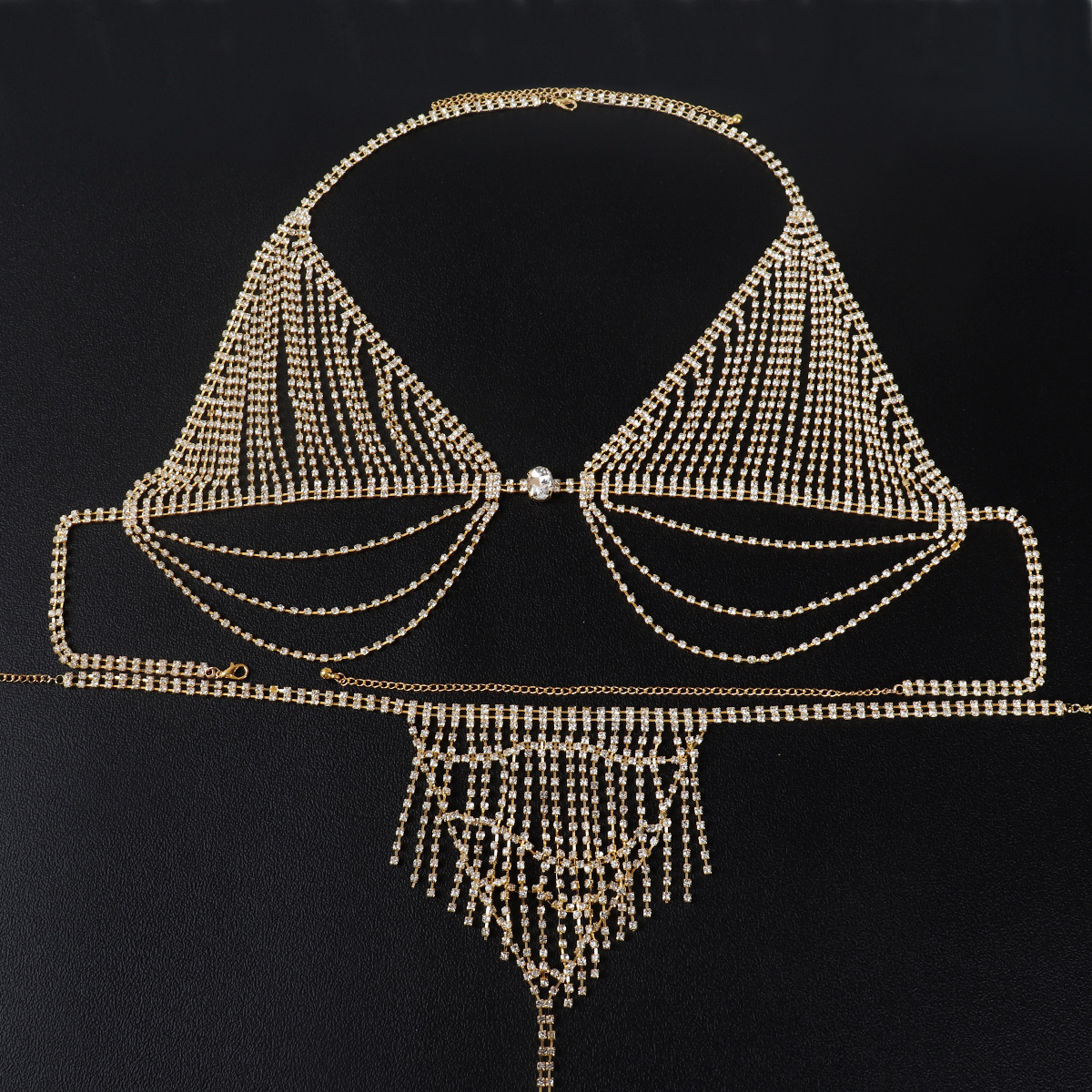 Cross-border Hot Mining Chest Chain Accessories Fashion Rhinestone Tassel Sexy Bikini Chest Chain Nightclub European and American Body Chain