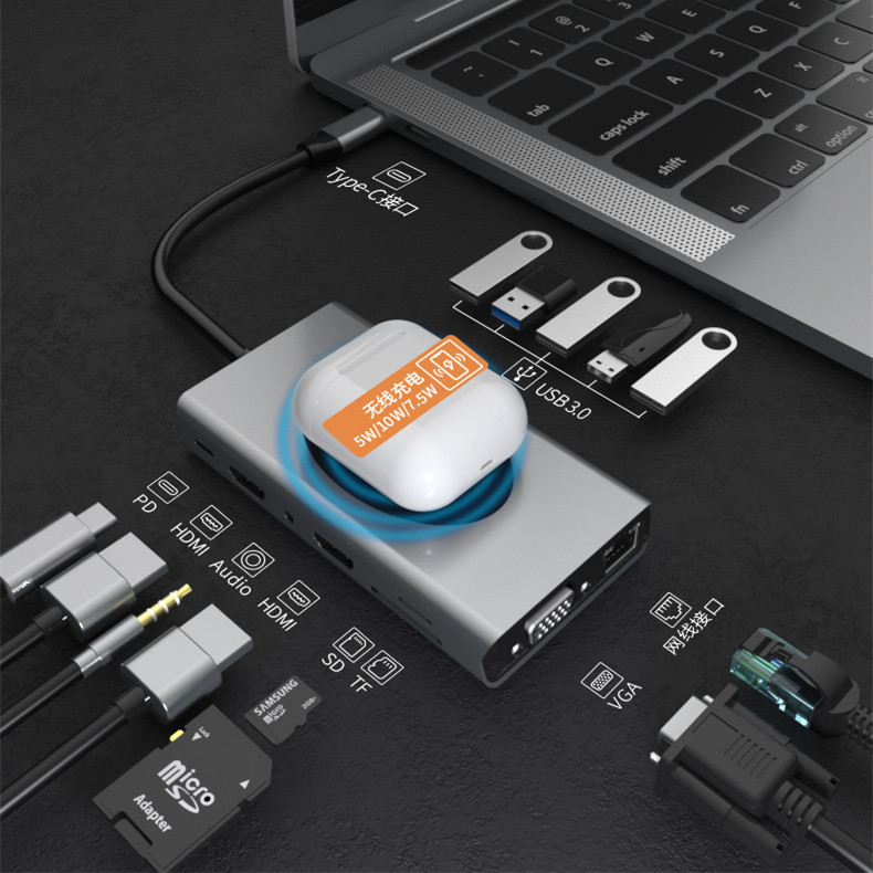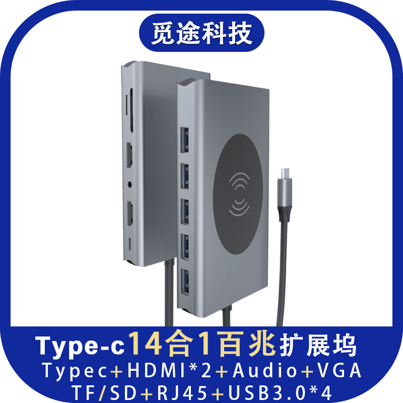 | nameOriginal | Cross-border hot sale 14 in 1 typec docking station usb hub hub dual HDMI wireless charging HD notebook |