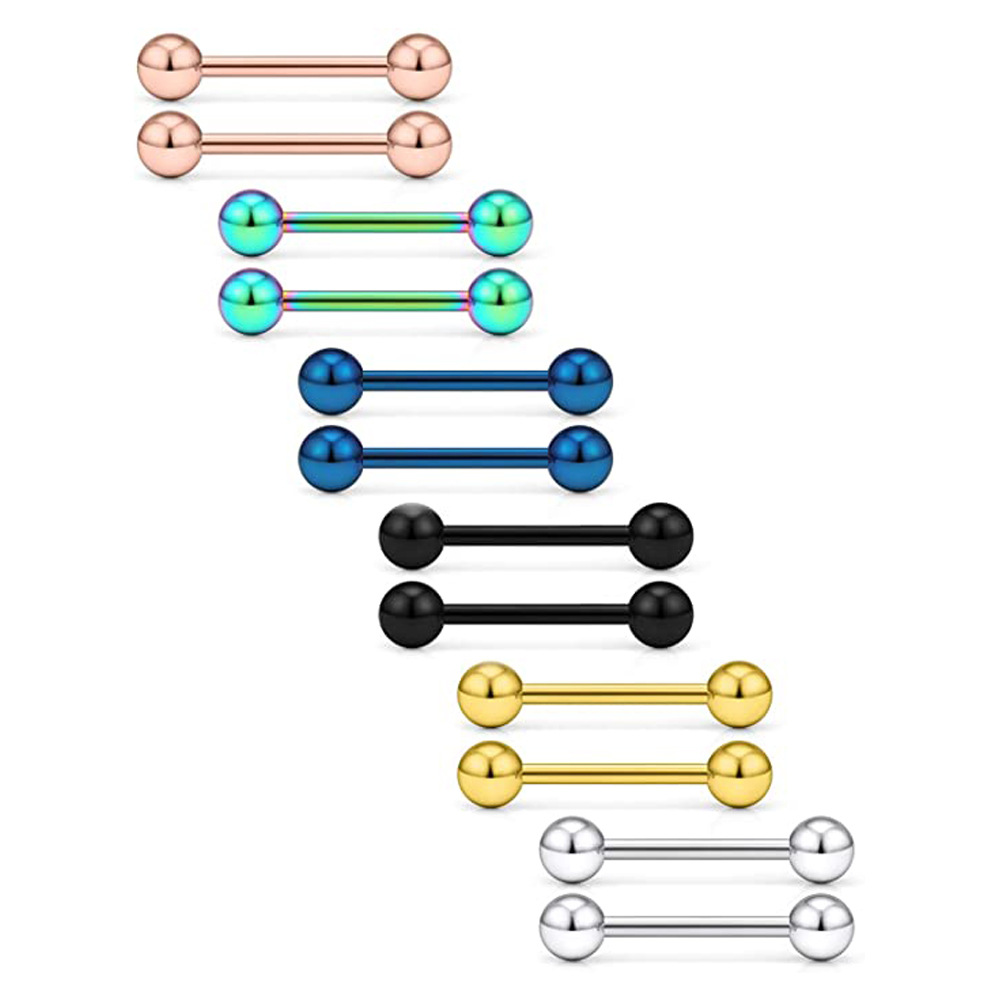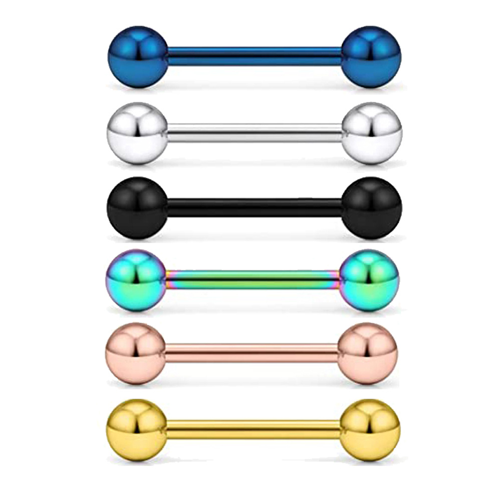 Cross-border hot sale 316L stainless steel tongue nail lip nail ear studs industrial barbell steel color puncture 16G 14g