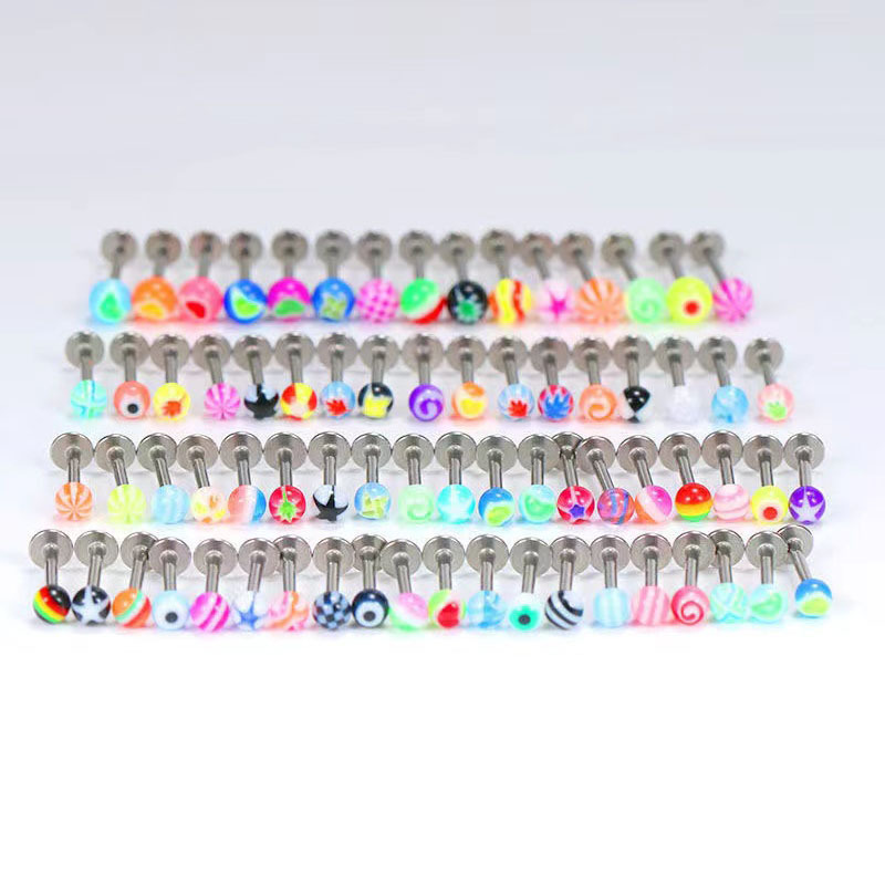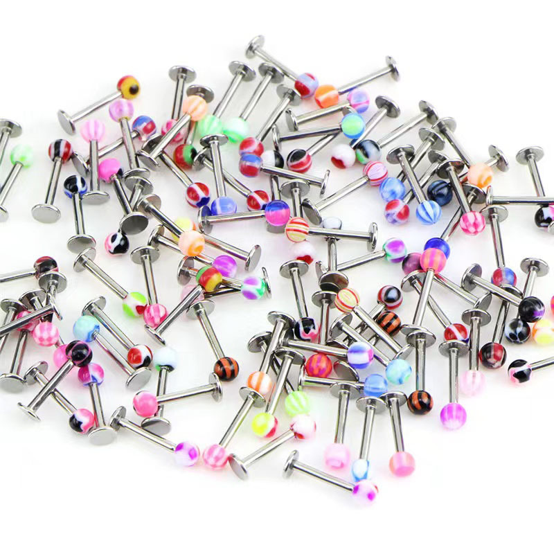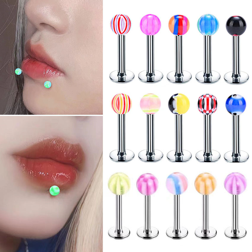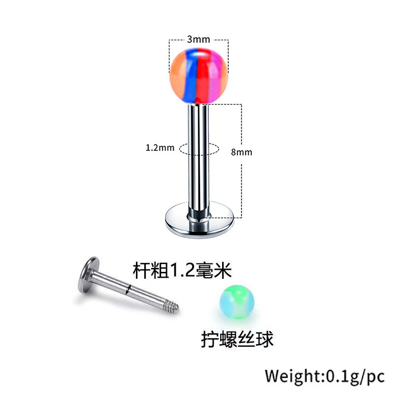 | nameOriginal | Cross-border hot sale acrylic mixed color ball lip studs multi-color mixed earrings stainless steel piercing jewelry factory direct sales |