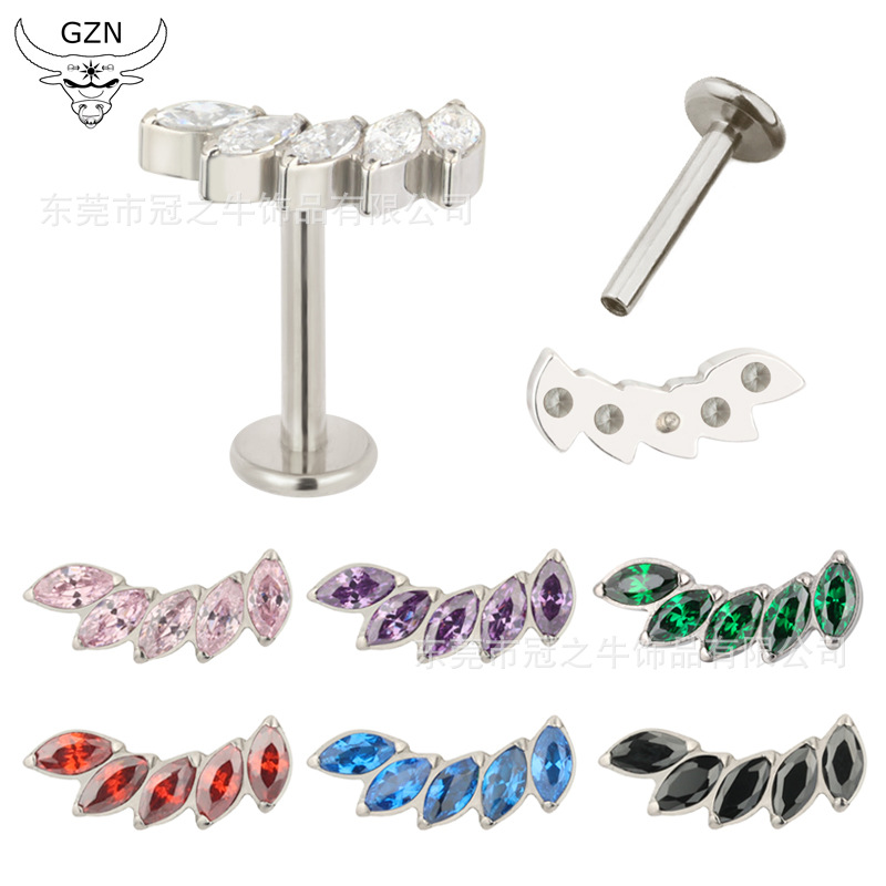 | nameOriginal | Cross-border hot sale ASTM F-136 titanium body piercing jewelry European and American multi-color zircon tongue nail lip nail ear bone nail |