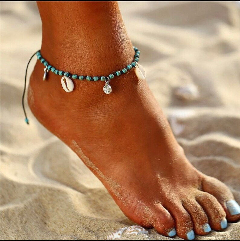 | nameOriginal | Cross-border hot sale Bohemian beach style shell pendant spiral female anklet handmade beaded turquoise footwork |