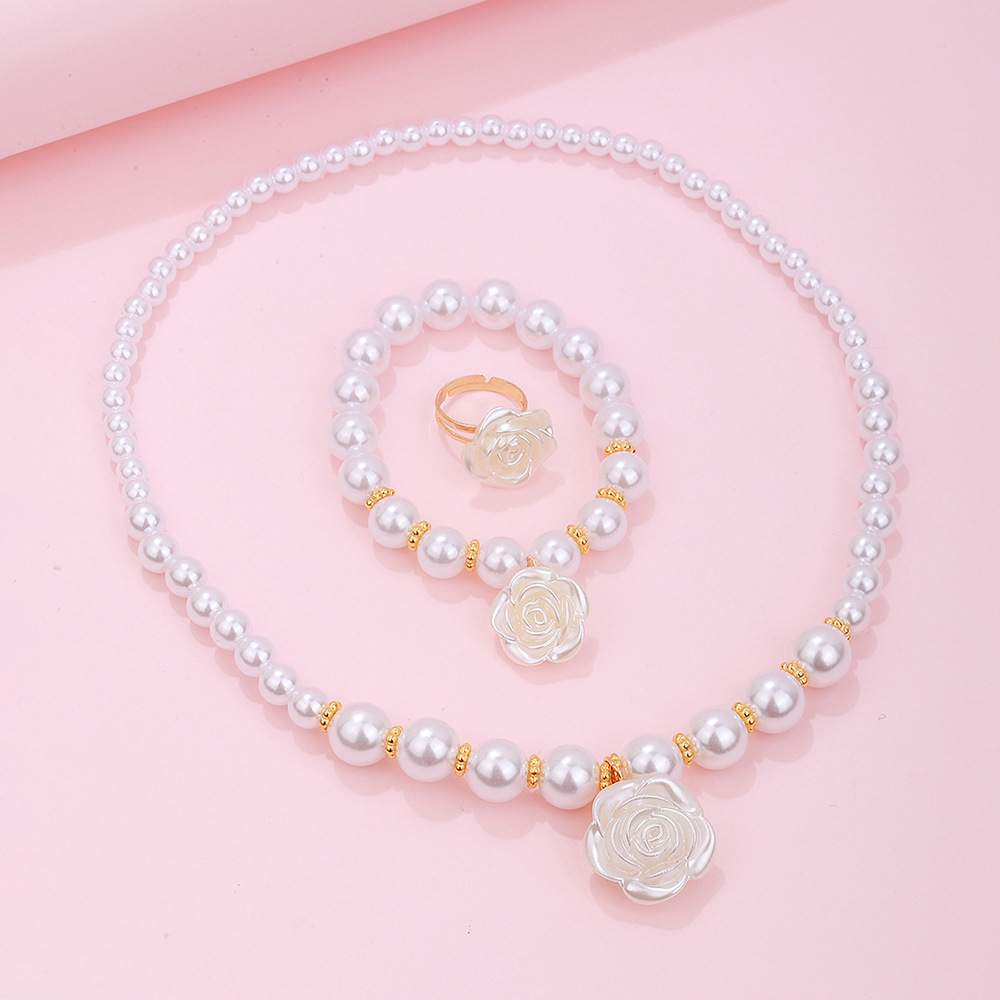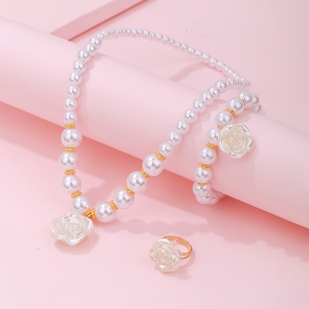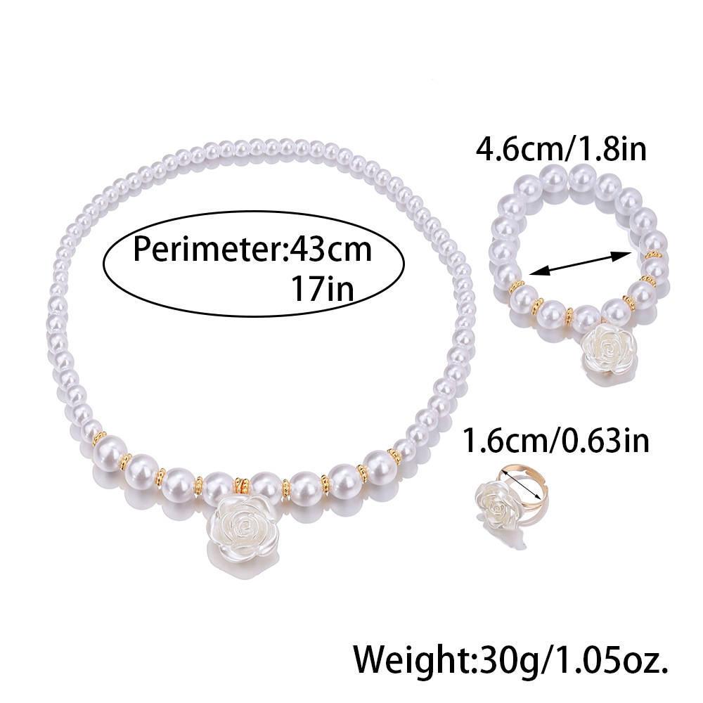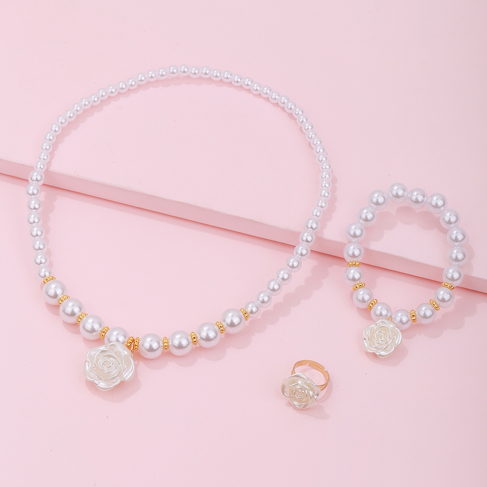 | nameOriginal | Cross-border hot sale Chanel style Pearl handmade beaded bracelet necklace simple Camellia ring suit children's jewelry |