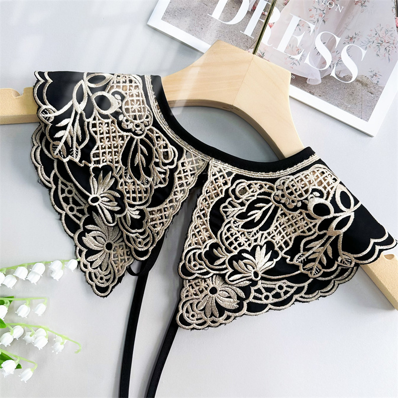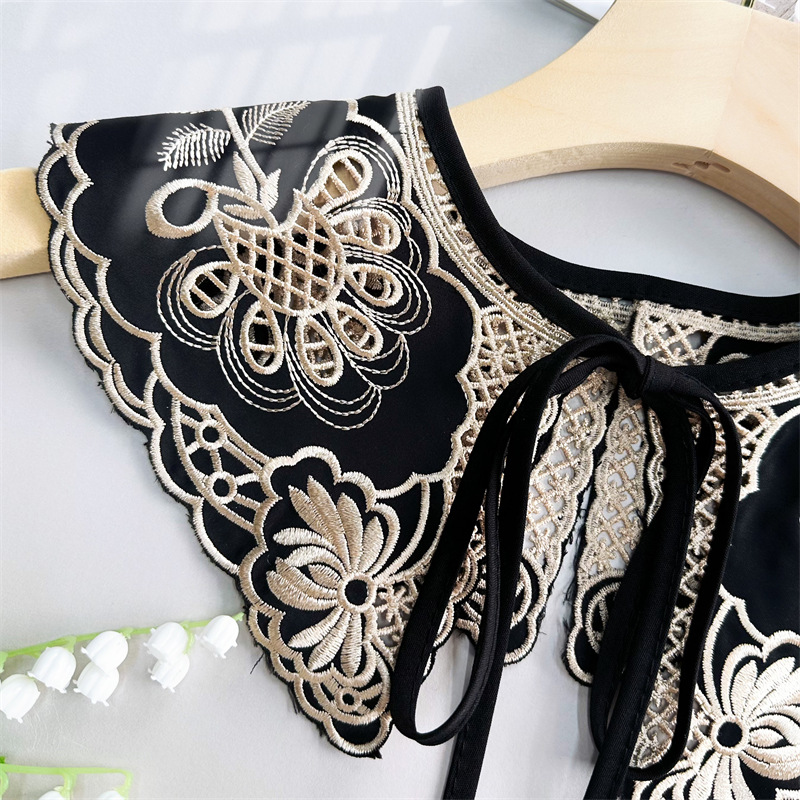 | nameOriginal | Cross-border Hot Sale Fake Collar Black Contrast Embroidered Hollow Collar Flower Lace-up Shirt Collar All-match Shawl for Hair |