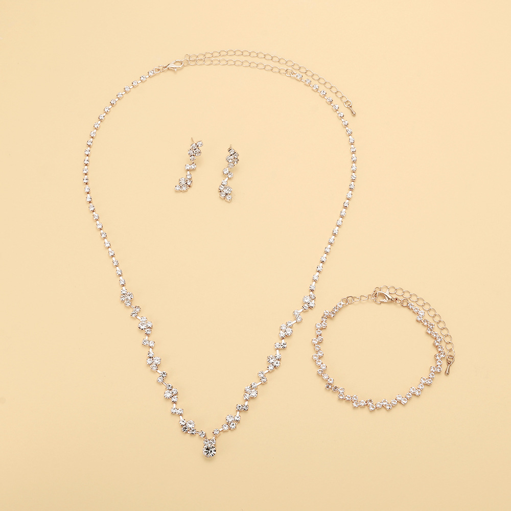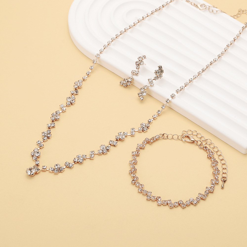 Cross-border hot sale fashion elegant rhinestone necklace stud earrings bracelet suit bridal jewelry female wedding accessories
