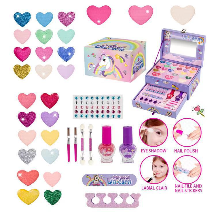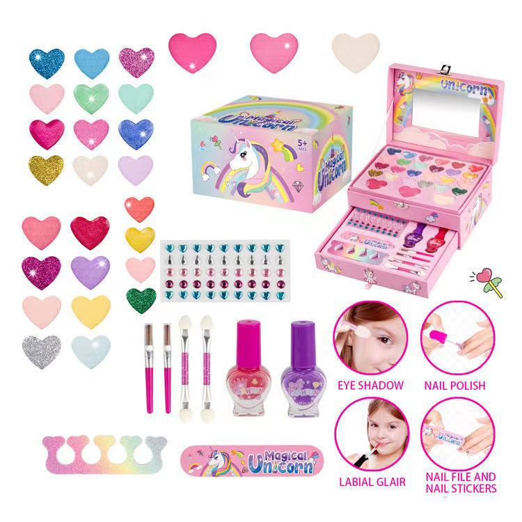 | nameOriginal | Cross-border hot sale play house cosmetics toys suit makeup dressing table storage portable box dress-up toys |