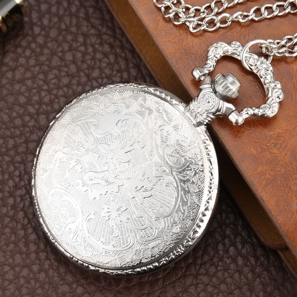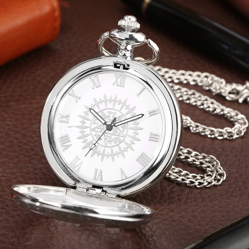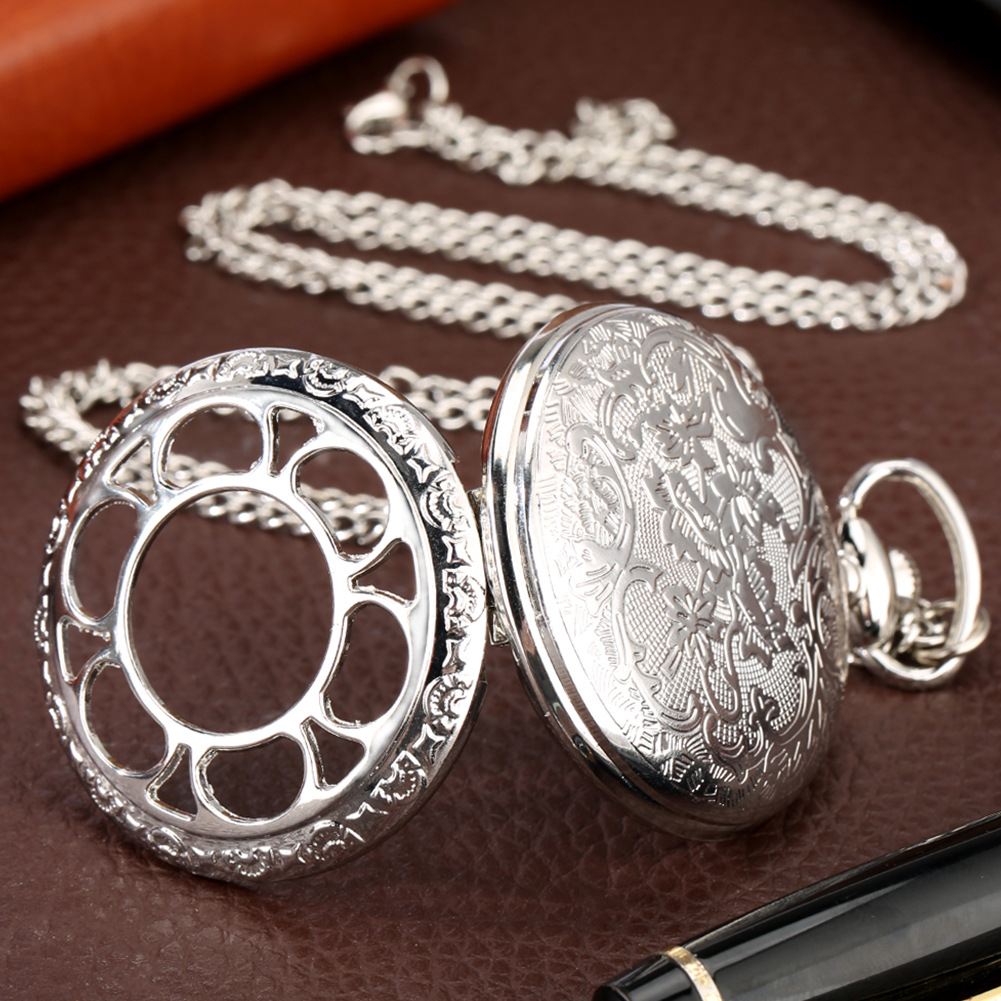 | nameOriginal | Cross-border hot sale Silver Hollow petals black magic array necklace quartz pocket watch student gift hanging watch one-piece delivery |