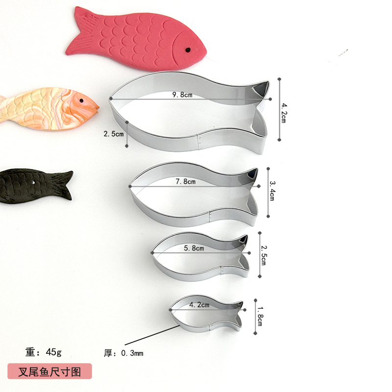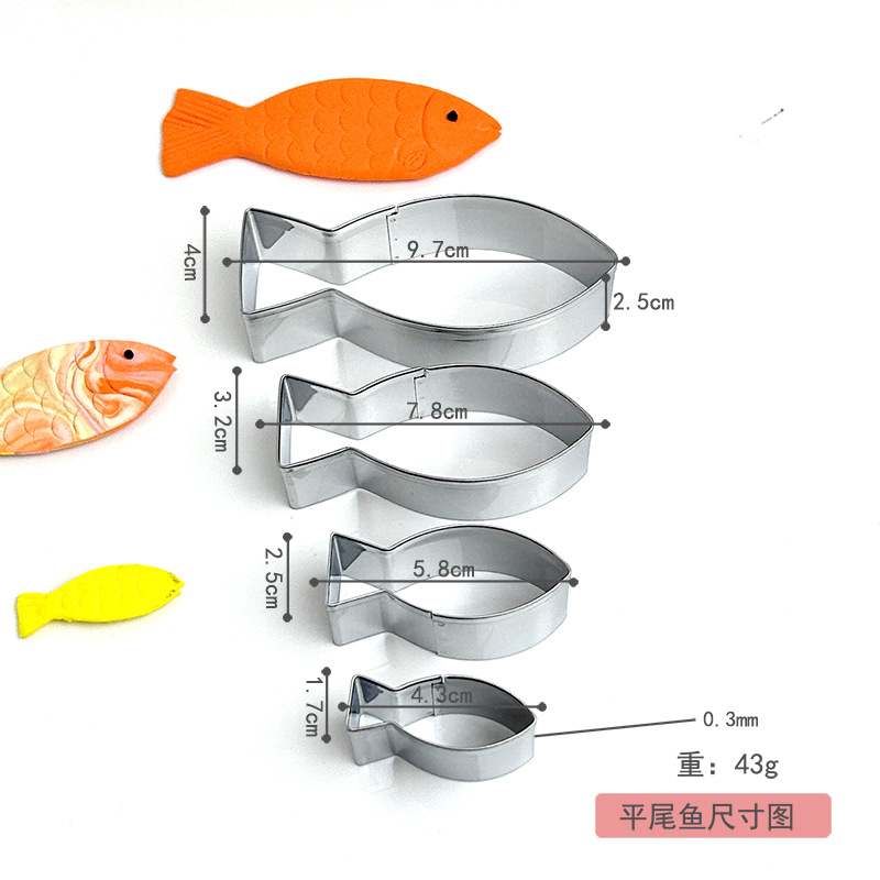 | nameOriginal | Cross-border hot sale small fish biscuit mold flat tail fish fork tail Fish 4-piece set carp baking fondant DIY kitchen cookies |