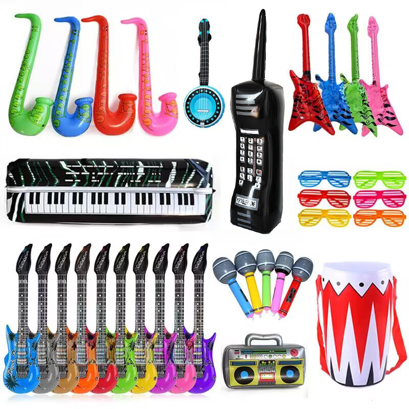 Cross-border Hot Sale Spot PVC Inflatable Musical Instruments Stage Props Musical Instruments Party Toys Inflatable Guitar Microphone