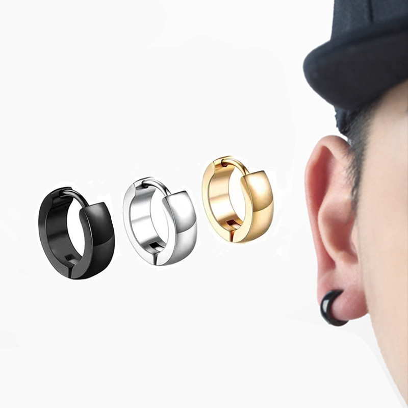 | nameOriginal | Cross-border hot sale stainless steel curved ear buckle unisex anti-allergy Korean style earrings fashion titanium steel round earrings |