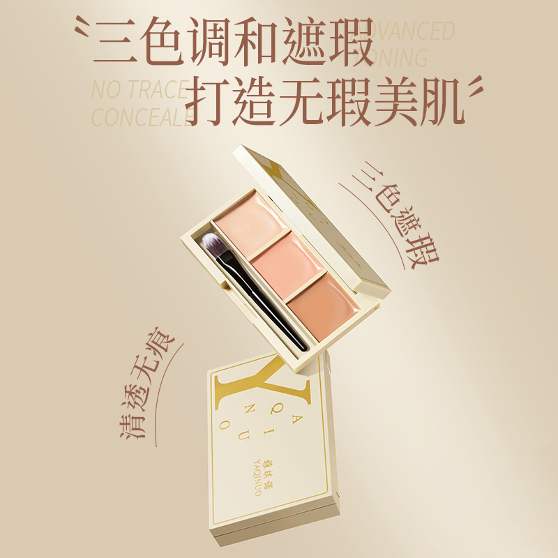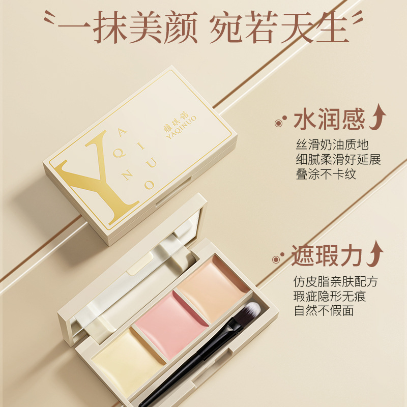 Cross-border hot sale YAQINUO Shui Yang three-color concealer plate waterproof sweat-proof concealer cover flaw spots