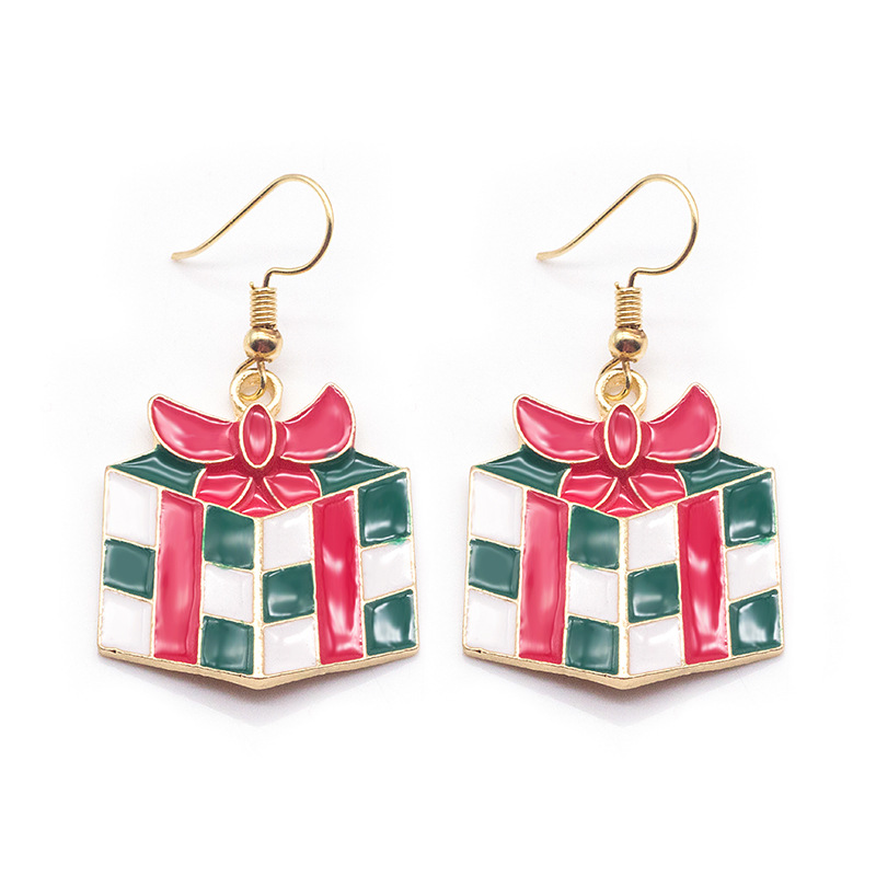 Cross-border hot Santa Claus snowflake elk drop oil earrings Europe and the United States jewelry factory direct wholesale and retail