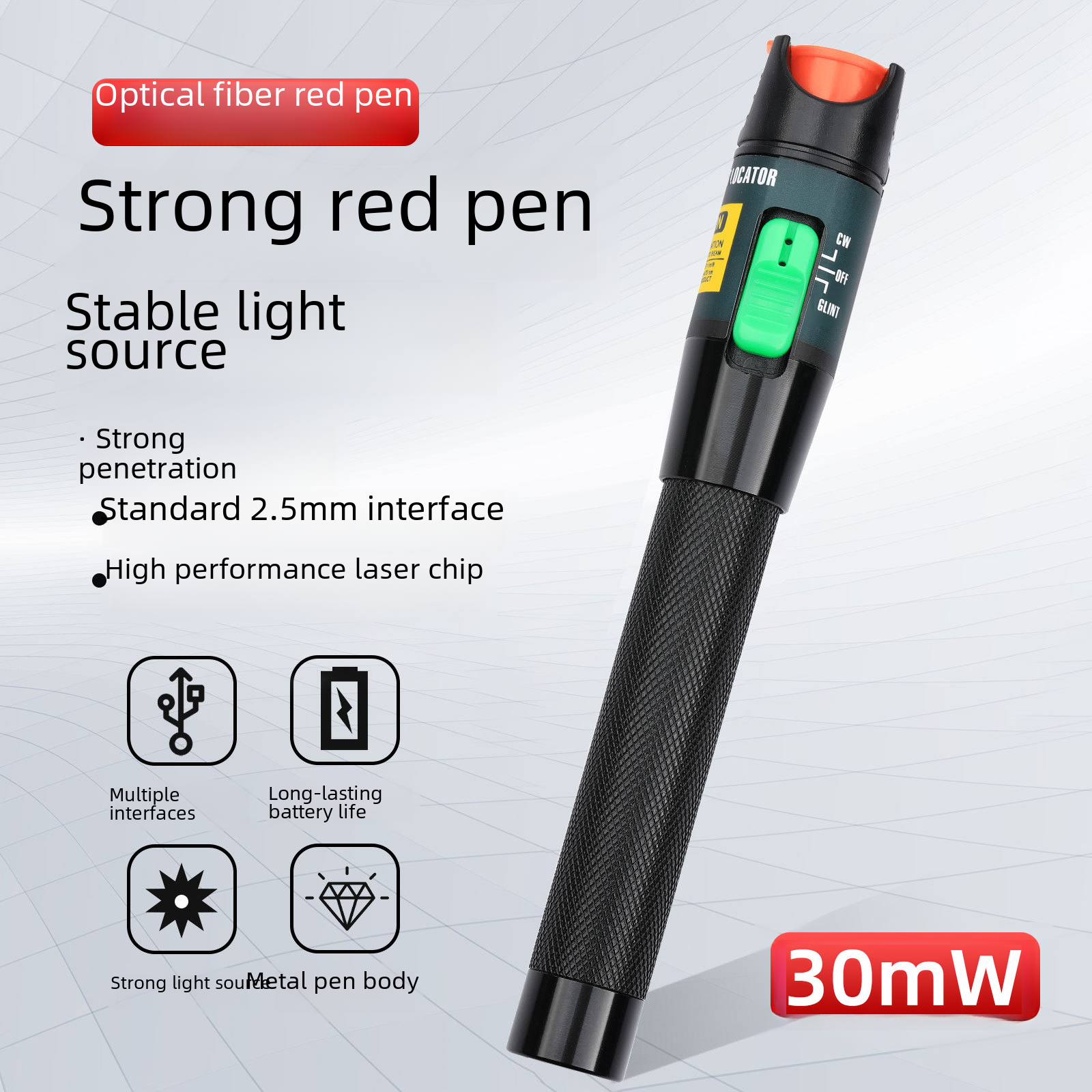 | nameOriginal | Cross-border hot-selling 30km optical fiber test Pen red light source light-through pen lighting pen pen type 30MW detection instrument |