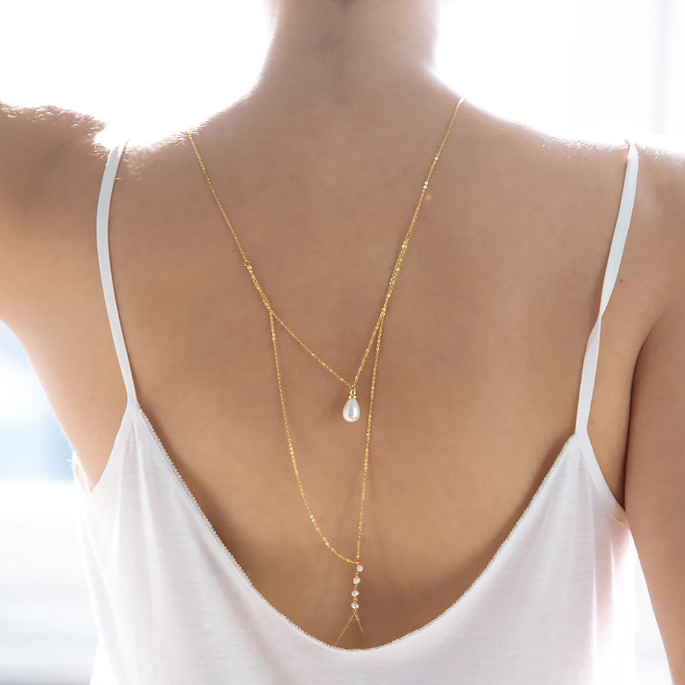 | nameOriginal | Cross-border hot selling bridal Pearl back chain women's long simple diamond-embedded backless back chain body chain fashion accessories |