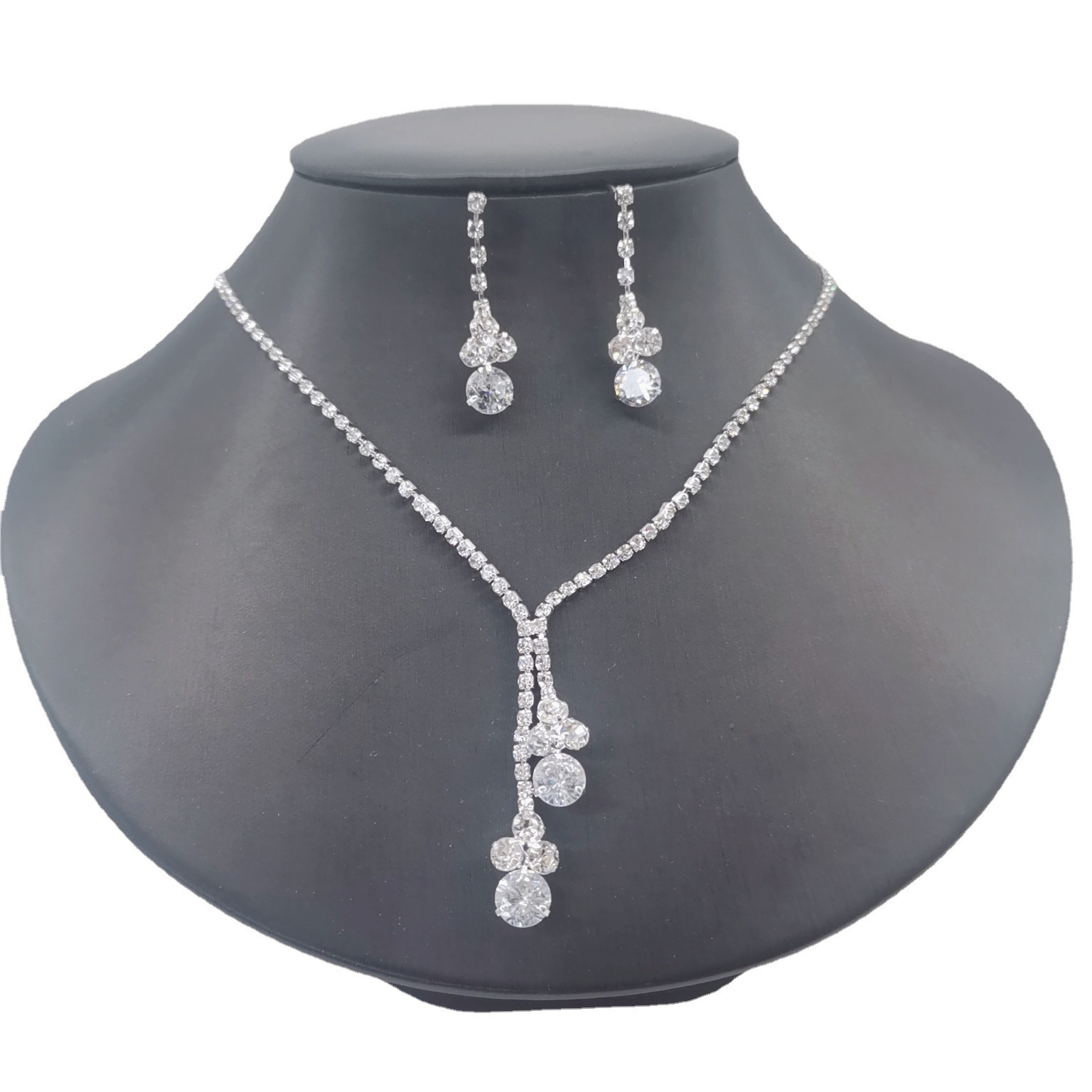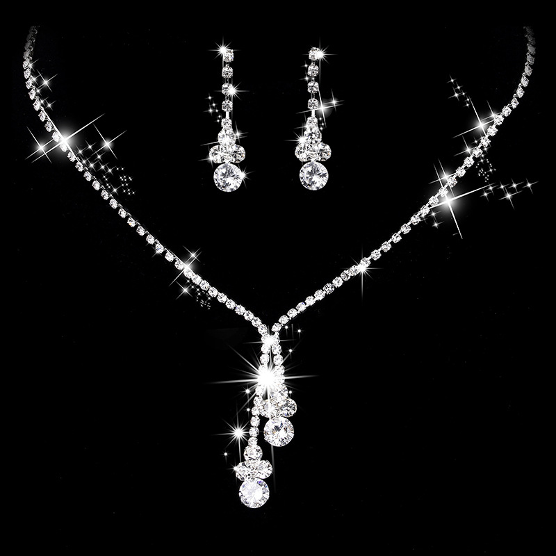 Cross-border Hot Selling Bride Wedding Jewelry Accessories Simple Brilliant Rhinestone Zircon Necklace Earrings 493